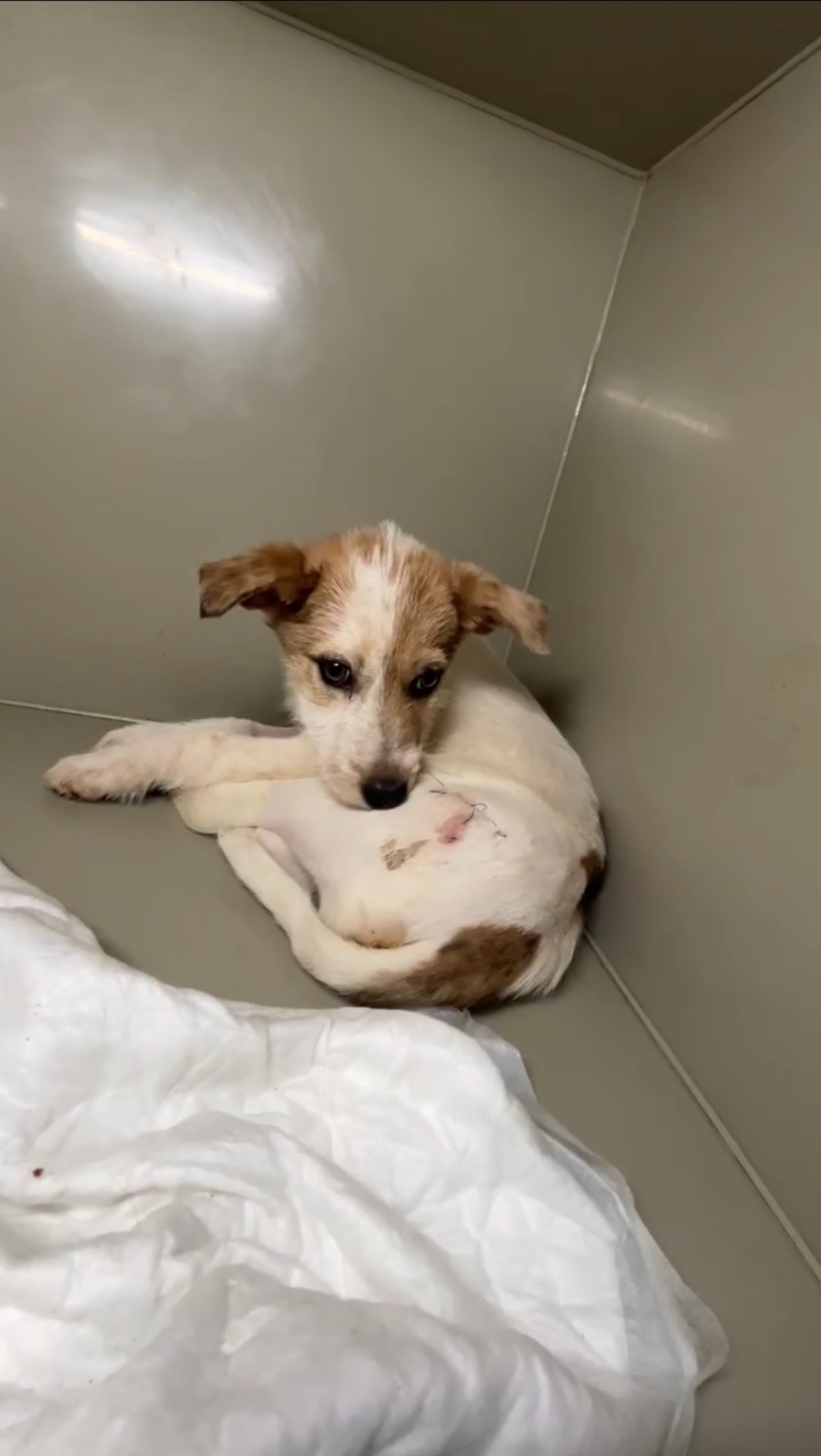 Щеночек… Его машина сбила, он ослеп, хозяева оплатили лечение, но отказались забирать (скорее всего они его просто сбили и это не их щенок вовсе)
