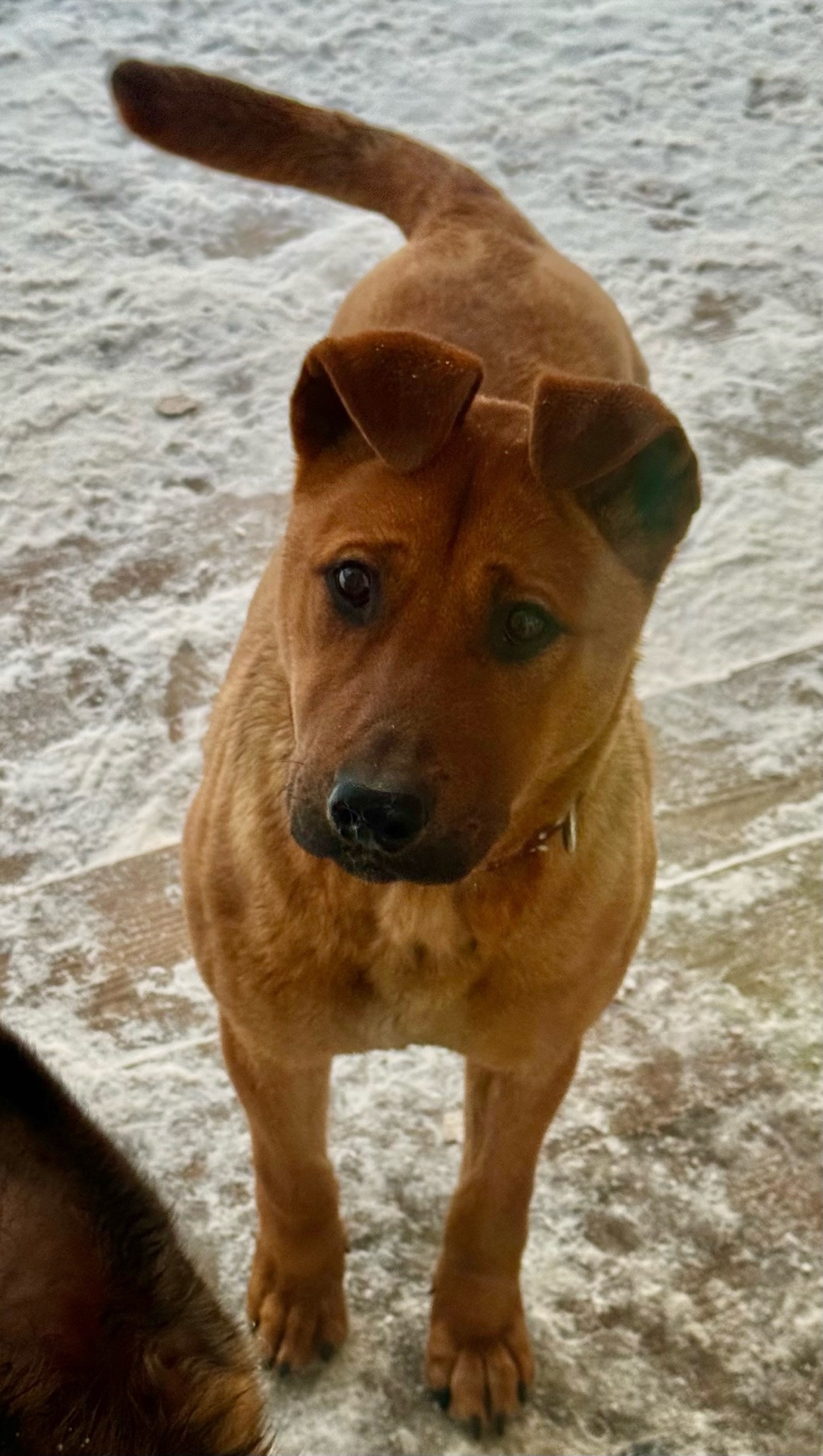 Метис, кобель, щенок, на вид 6-8 месяцев.