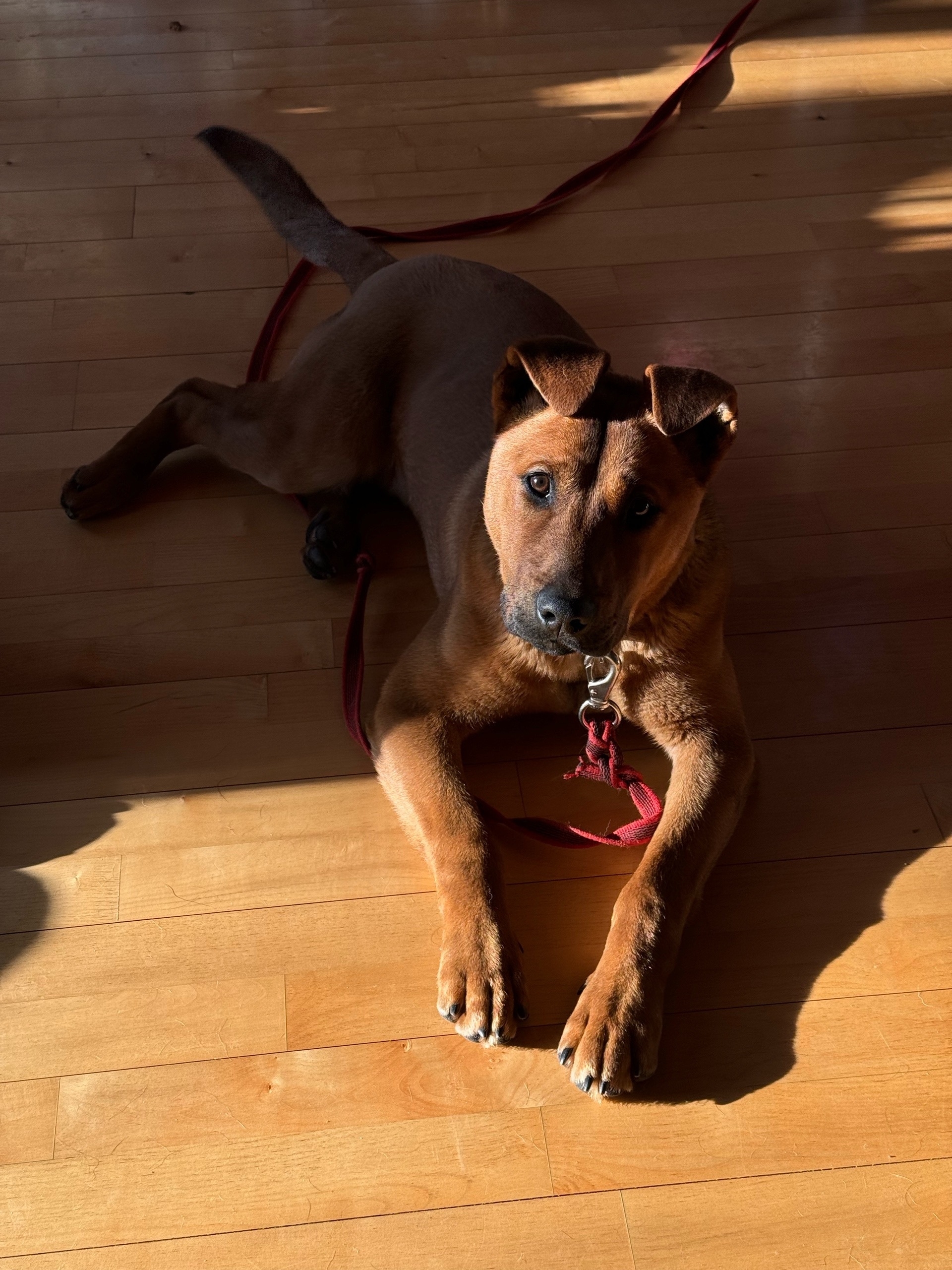 Легко адаптируется в новой семье, также сейчас возраст, когда можно обучить всем командам.