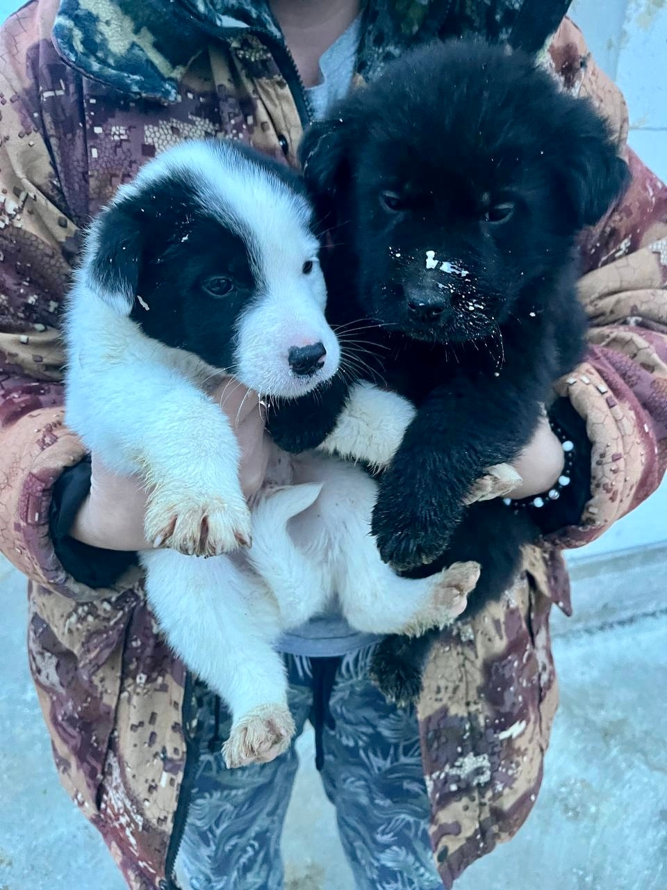 Краткая история такова, бегала у нас на улице молодая собака девочка, очень умная, не агрессивная…ощенилась на стройке. Малыши пока сосут молоко матери, но они растут этого им становится мало, плюс ко всему холодает на улице🥶 Насчитала их 6 штук) 5 черных и один белый с черными пятнами на морде. Примерно месяц им. Их очень жалко.