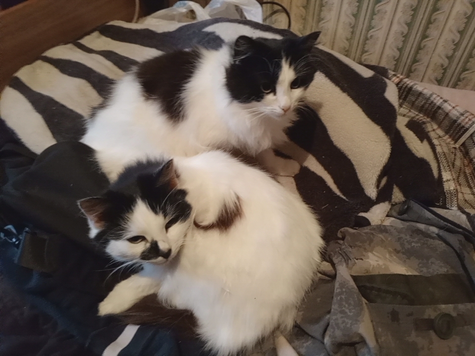 Милые, ласковые, тихие красоточки. Обе стерилизованы. Сейчас живут в пустом доме, пока кормят, приходят к ним , но это очень временно. В деревне найти им дом не реально, у всех есть свои животные и брать других никто не будет. Да и живут там такие же пожилые люди.