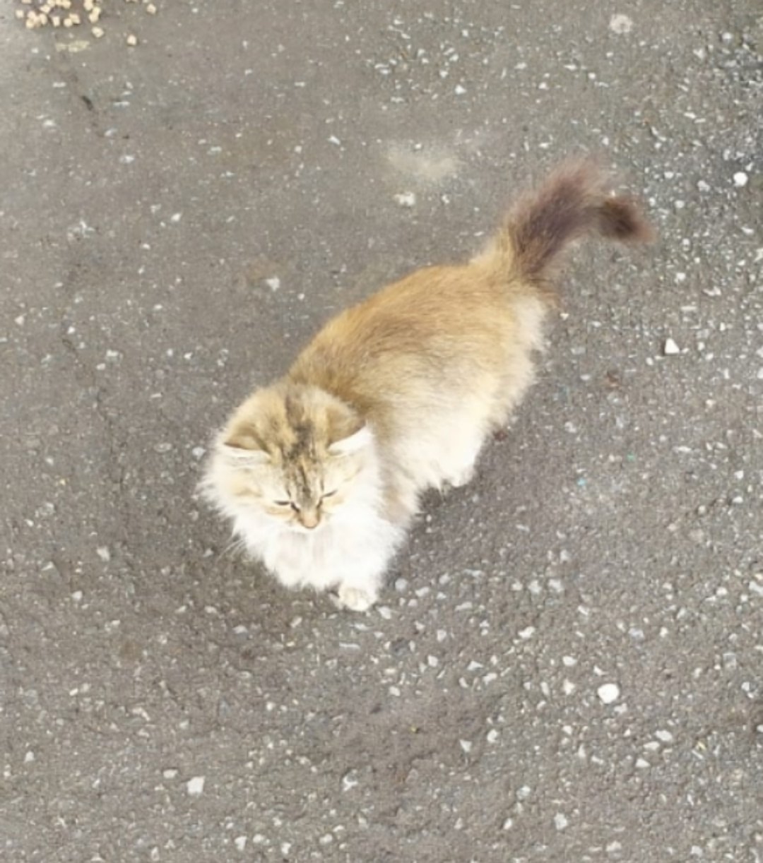 Очень ласковая, просится на ручки, видно что была домашней. Совсем лëгонькая, как пушок, ласковая, ходит хвостиком.