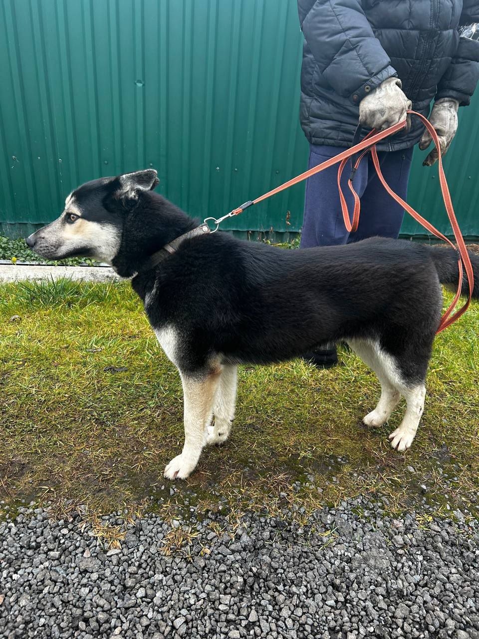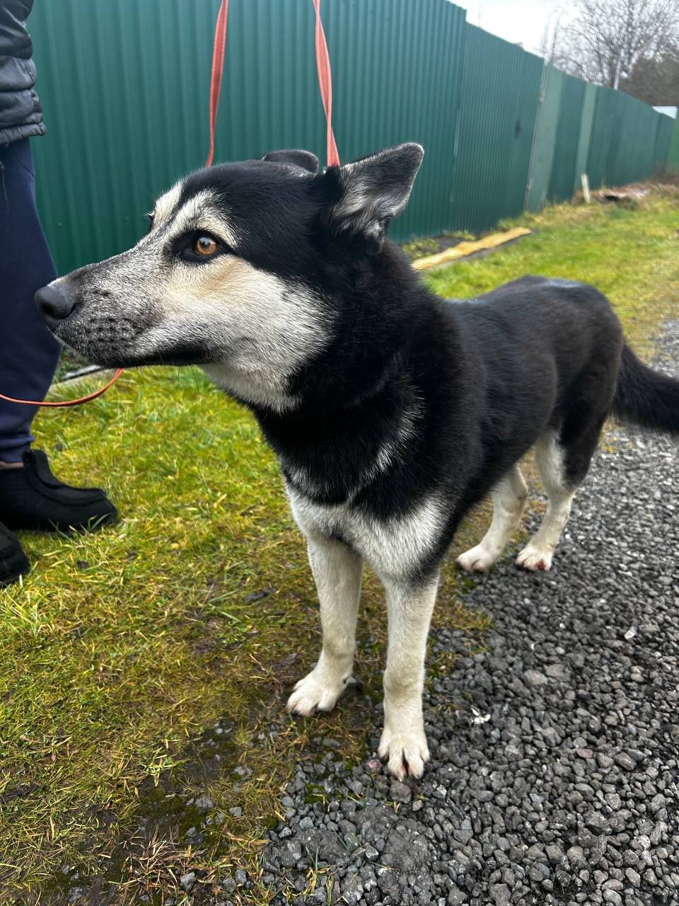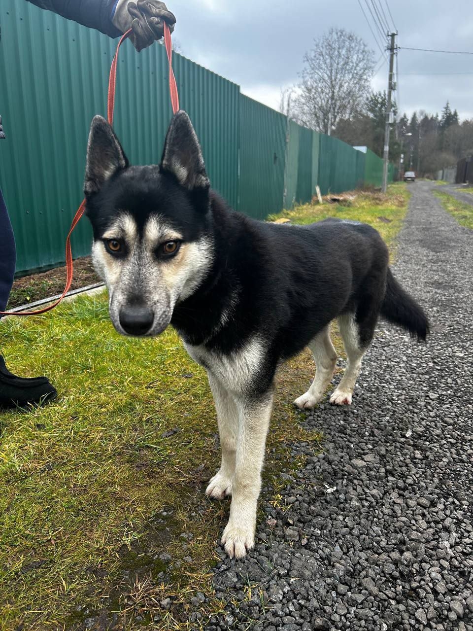 Собака, овчарка метис, мальчик. Молодой, примерно год. Хромает на одну лапу, в остальном здоров. Видимо получил травму. Ласковый, напуган. Пришел на участок в снт и остался, не уходит. Понимает некоторые команды, быстро учится. Найден был 05.12.2025 в Одинцовский район, деревня Сивково, рядом с поселком Бутынь.