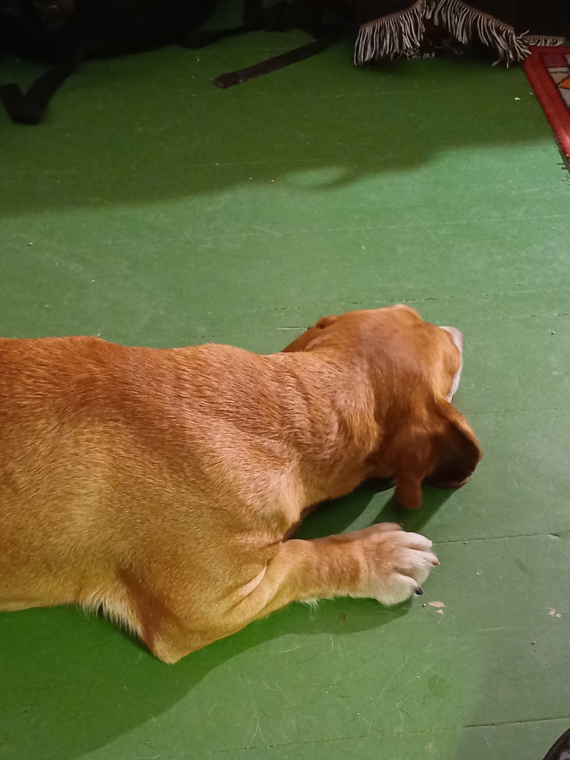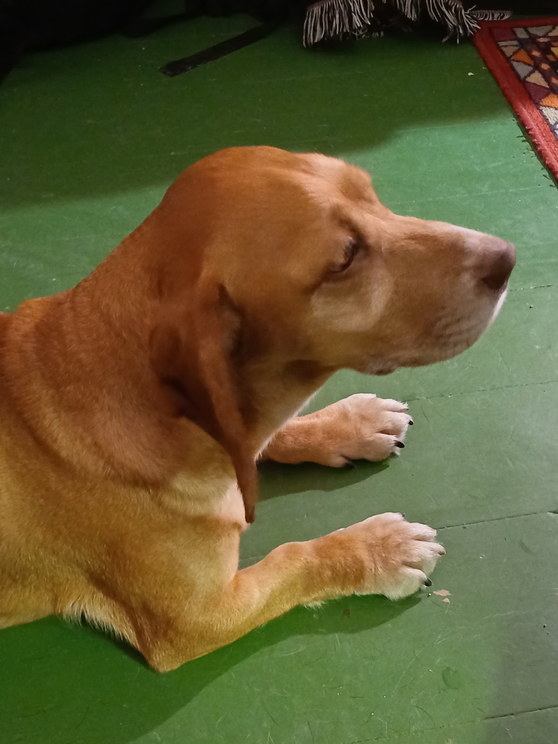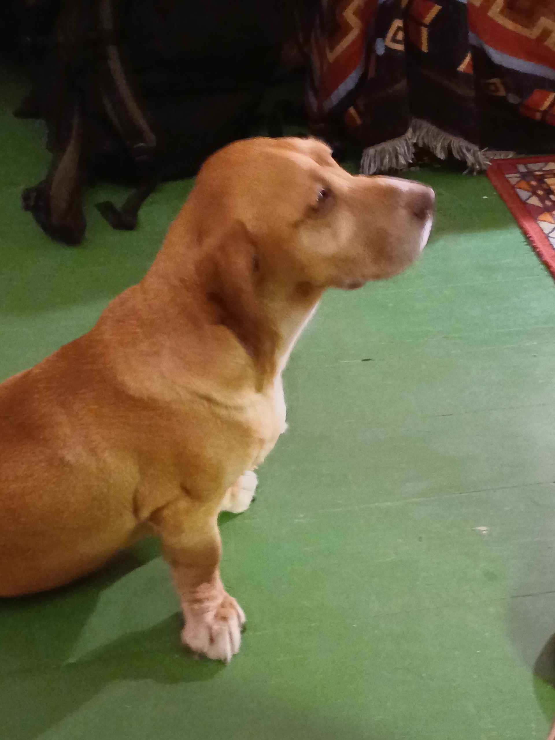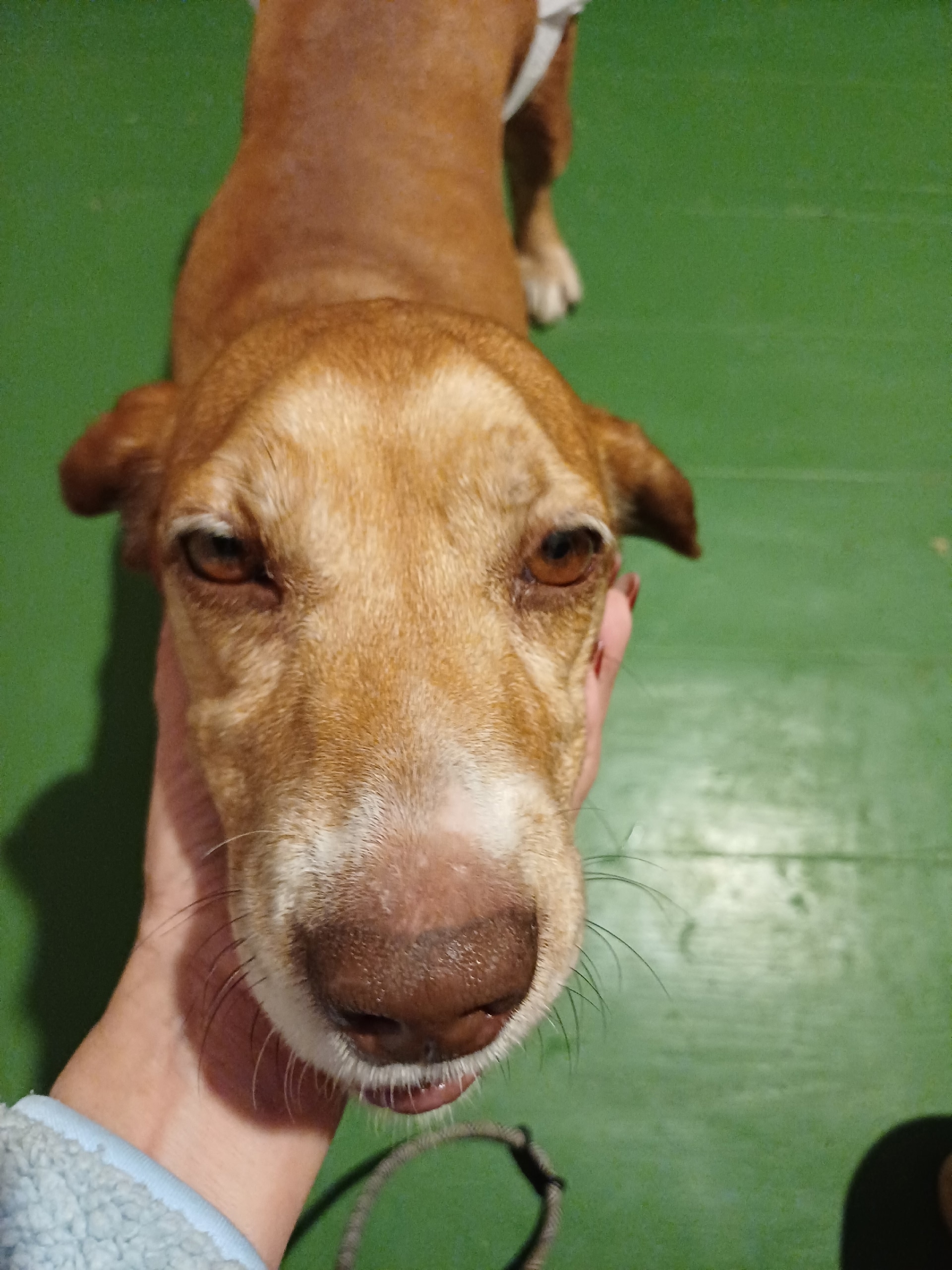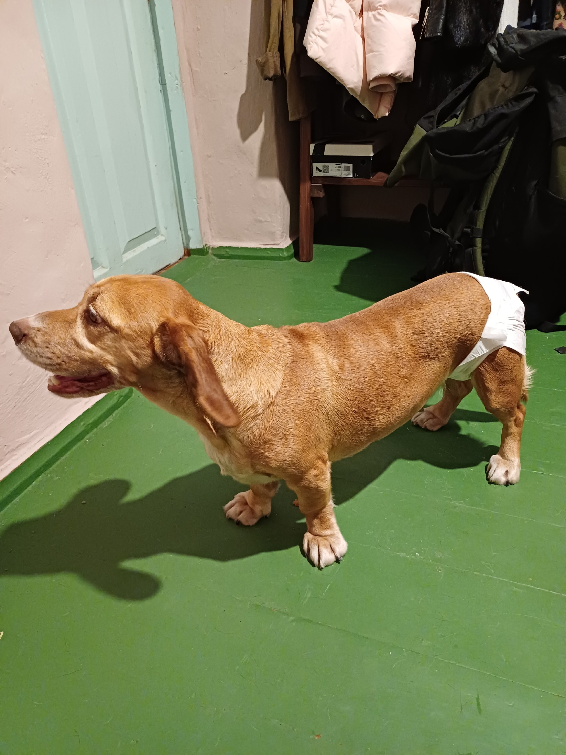 Собака, возраст примерно 3-4 года, рыжего окраса, девочка. Найдена в хуторе Чембурка на пересечении (круг) Шоссейной улицы и А-290. Собака бегала по проезжей части в растерянности. Фенотип немецкой таксообразной гончей (вестфайленский таксообразный бракк). Девочка домашняя, адекватная, контактная, не агрессивная, замечательно ездит в машине, купается, знает поводок, не уличного содержания.