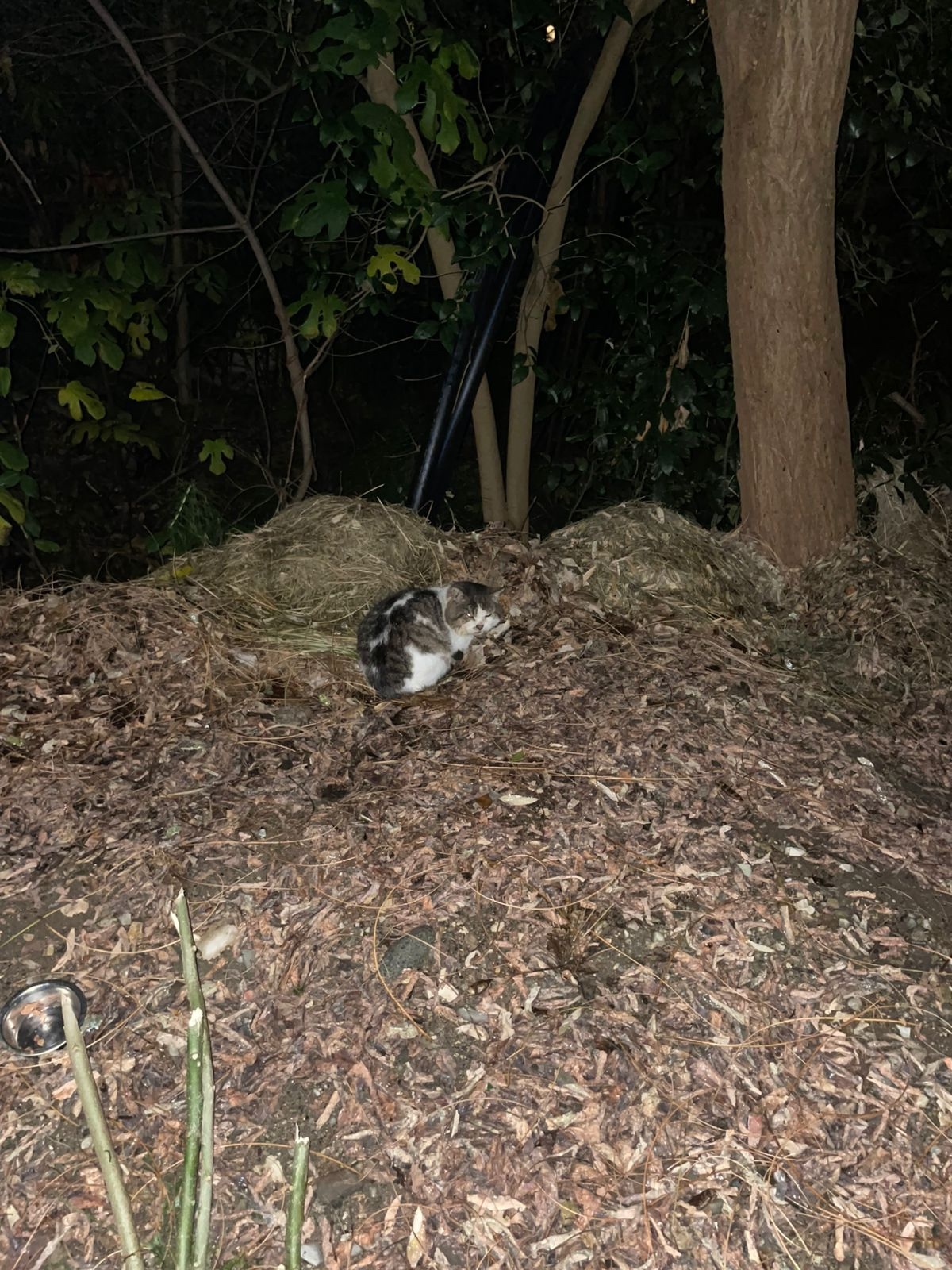 Делает себе лунки в листьях и спит в них. Вижу его 4 вечер, покормила, ест жадно, аж давится.