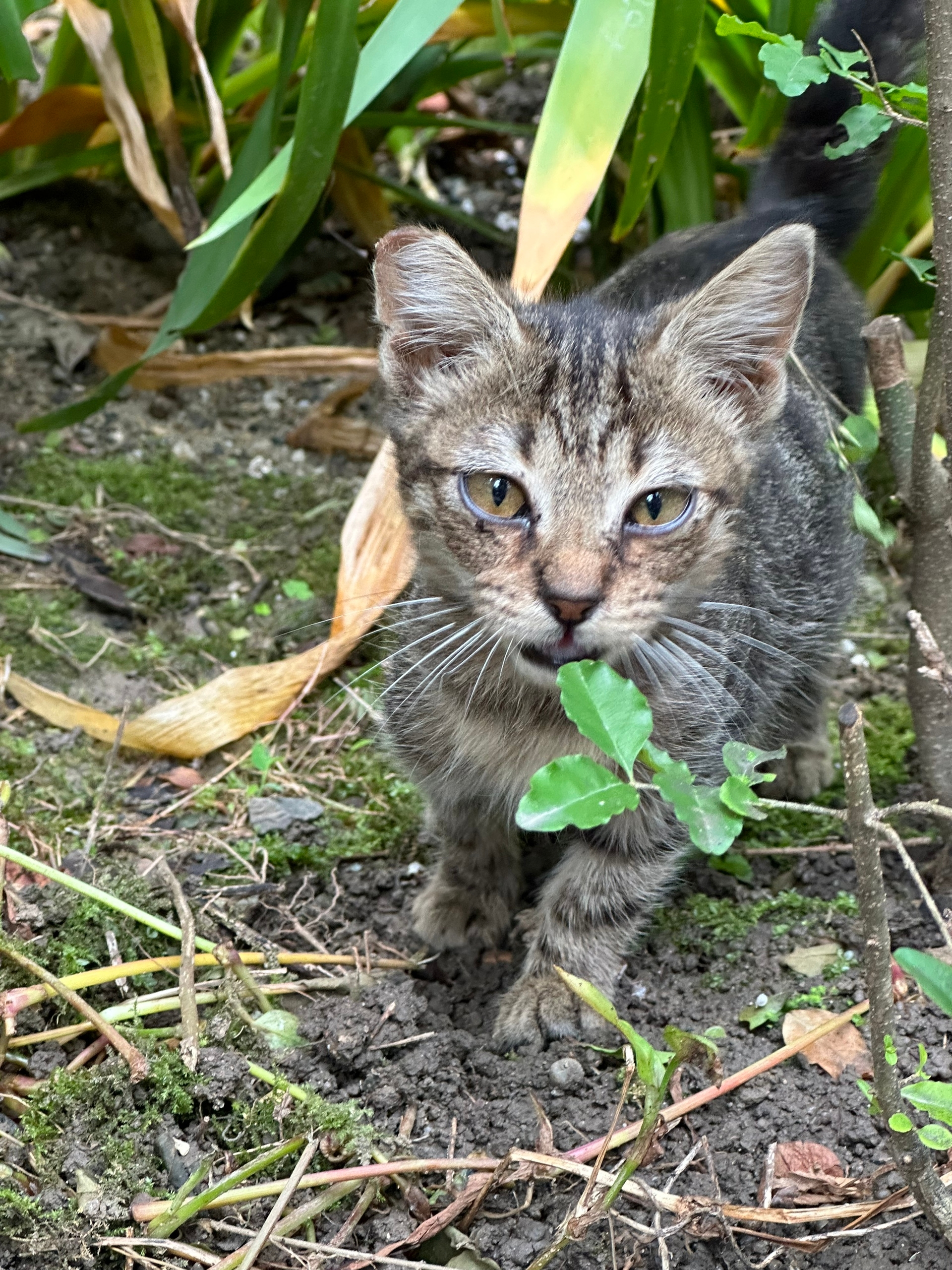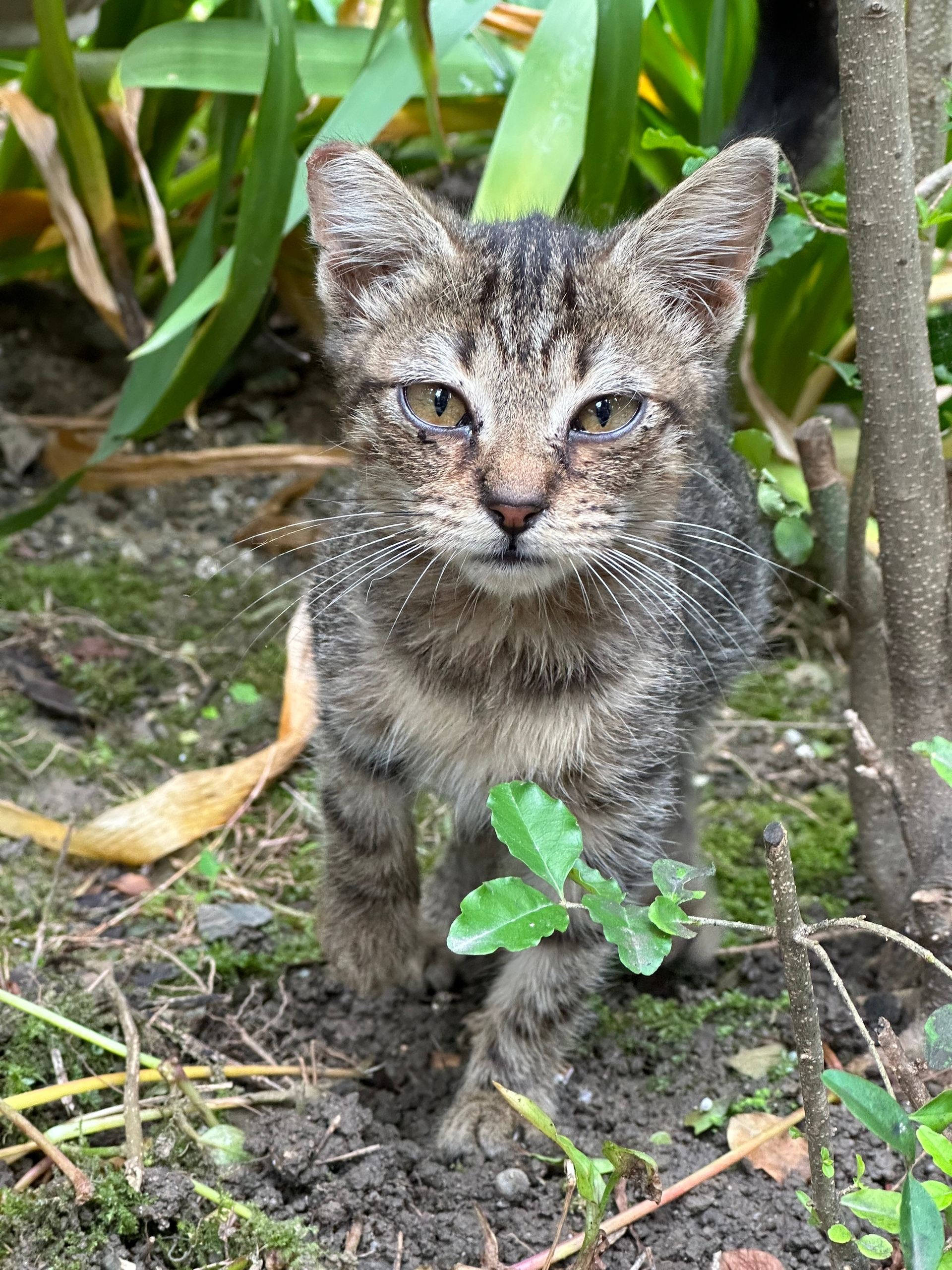 Котенка подкинули пару дней назад в место кормления кошек, он все время плачет, но в то же время котенок игривый, следит за собой , вылизывается .