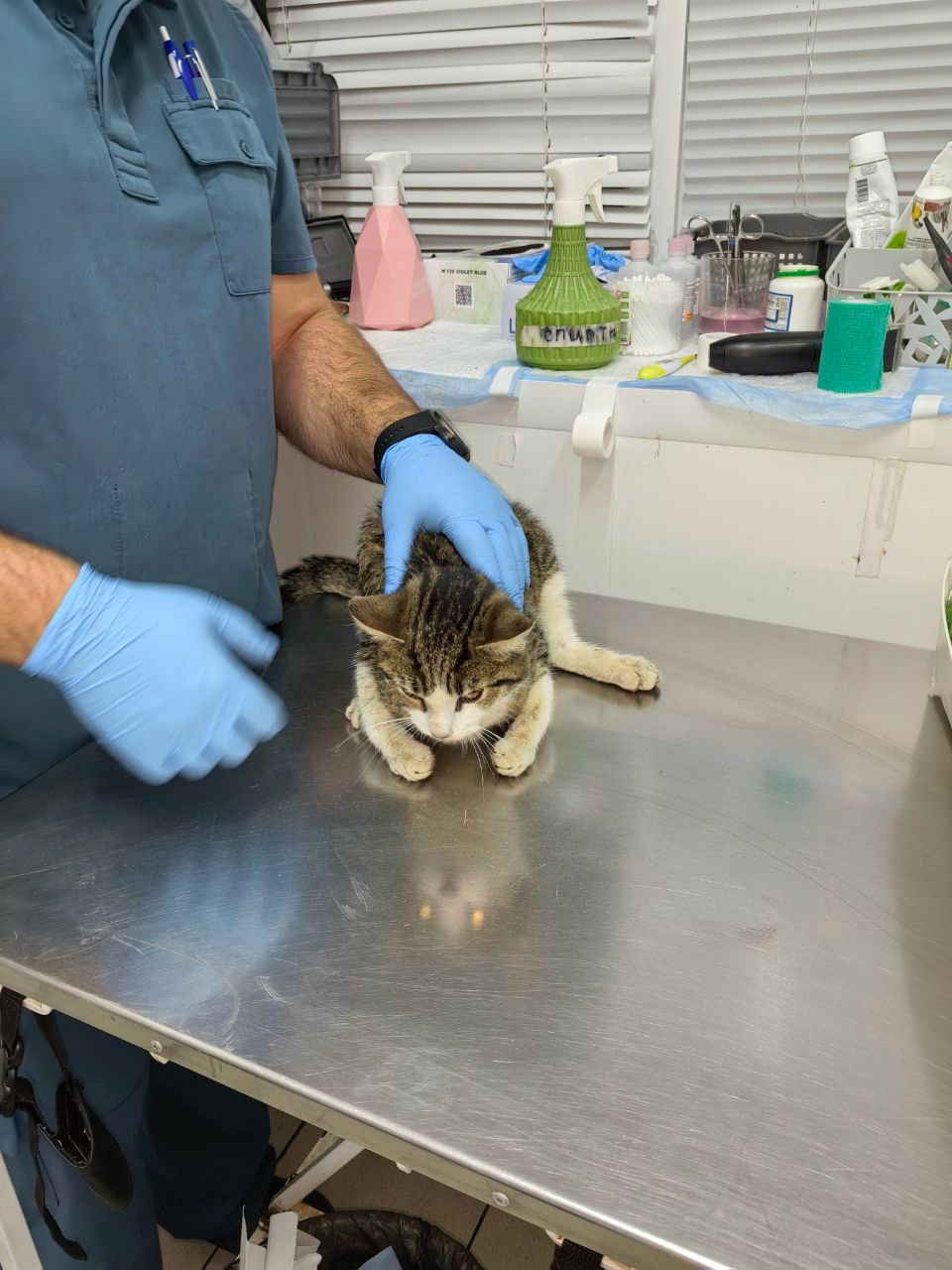 В одном из домов в Рекинцо в подъезде появился вот этот бедолага, что могло с ним случится нам точно не известно, предполагаем лишь, что выпал из окна. Возможно он чей-то, и его хозяин откликнется, а пока котейку отвезли в клинику, где он останется в стационаре, для оказания ему первой помощи.