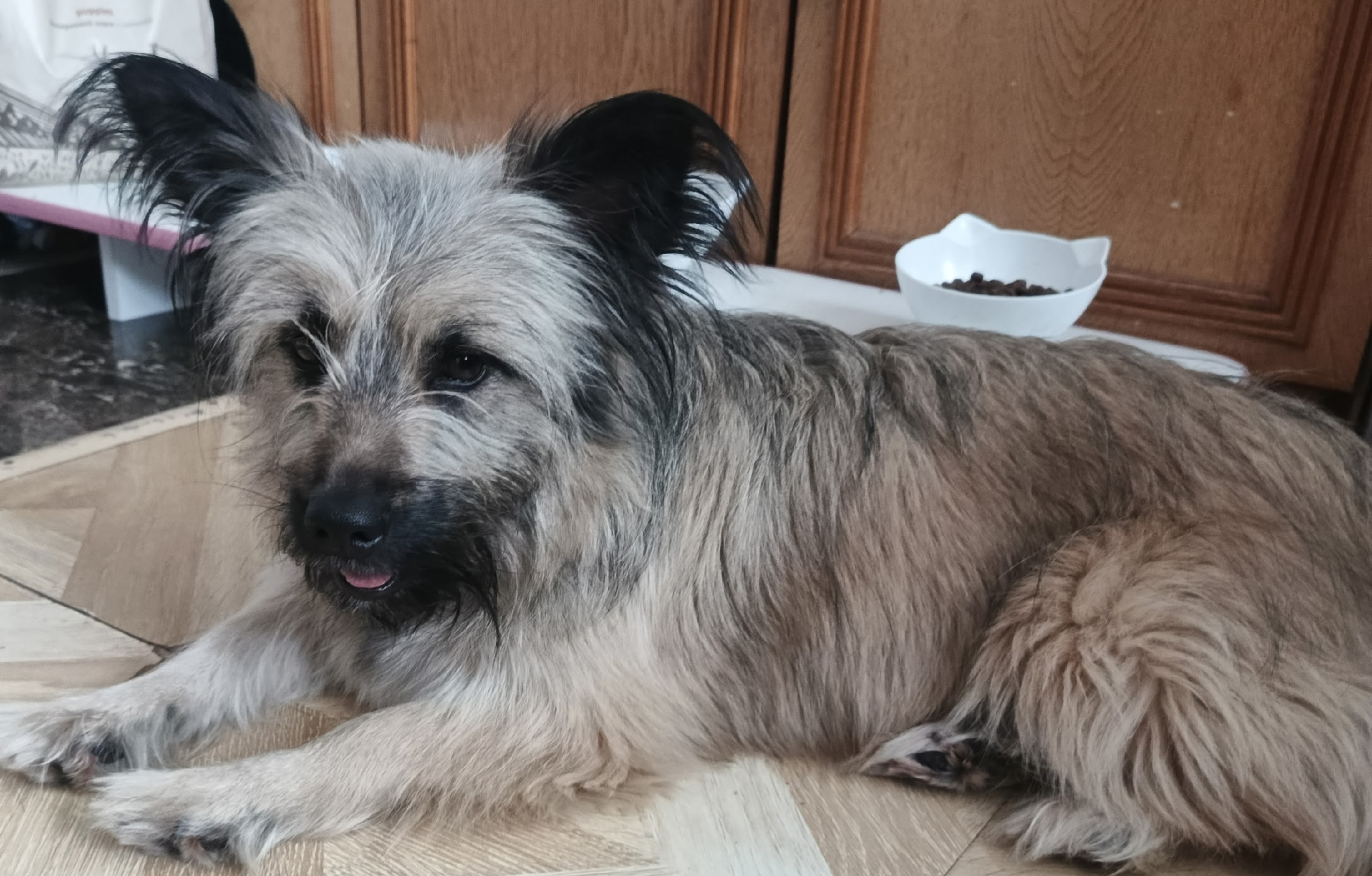 Девочка, рождена в мае, стерилизована, от паразитов обработана. Мама керн-терьер, папа двор-терьер 😊 Кушает всё, добрая, обучаемая. С другими животными ладит.
