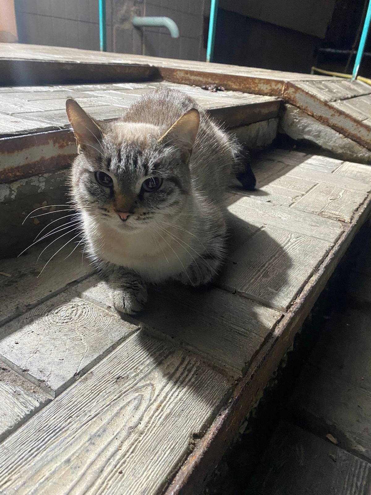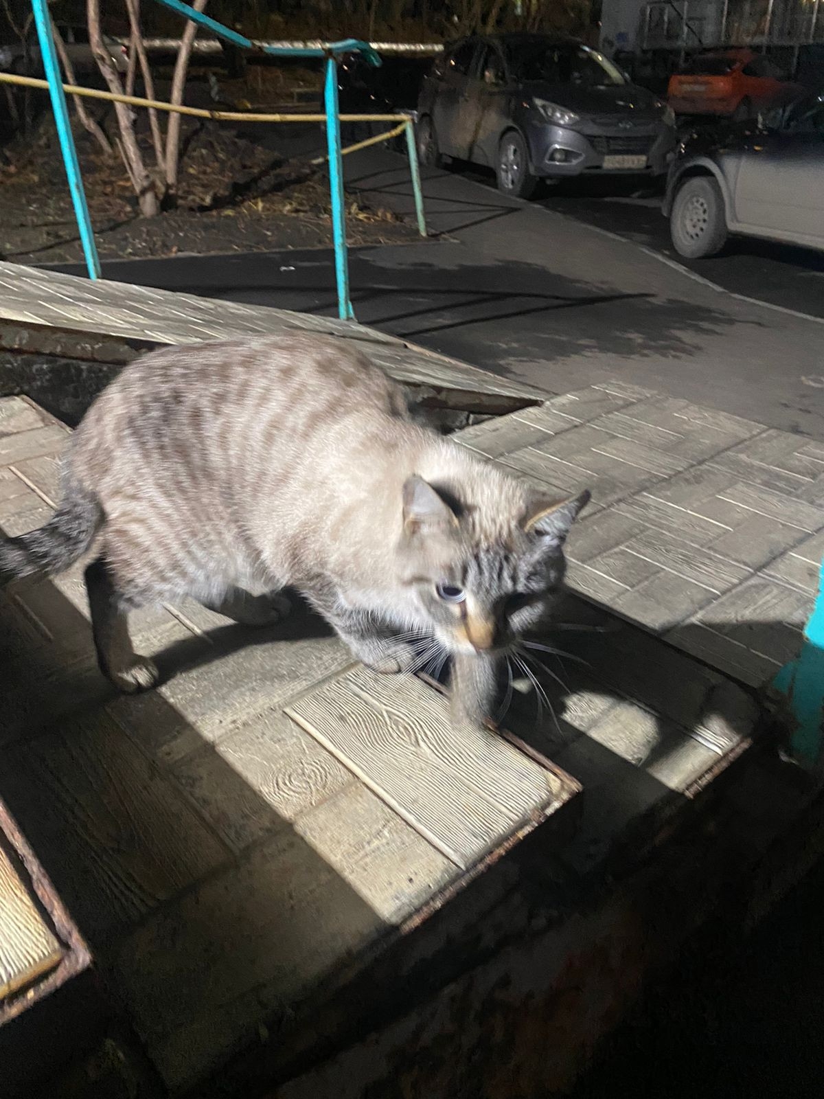 Около подъезда сидит кошка (породистая, или смесь). Точно бывшедомашняя. Срочно ищем старых или новых хозяев. Ситуация критическая так как во дворе живёт стая собак.
