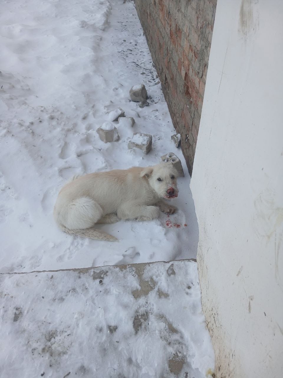Щенка сбила машина, и сейчас он остаётся на улице в опасном положении. Пожалуйста, помогите ему!