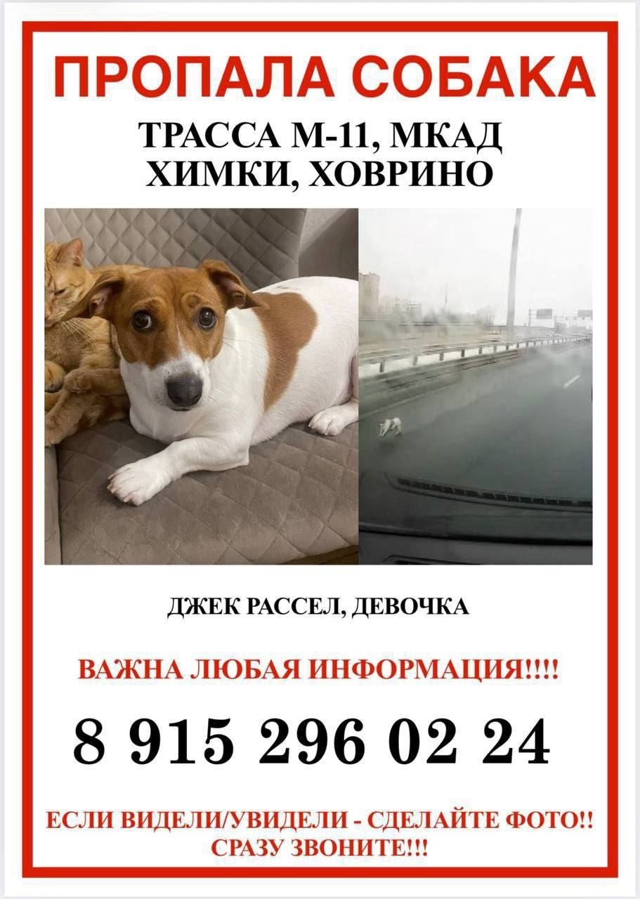 Сегодня, 27.02 в 12:20 с ул. Совхозной Химки убежала собака Джек рассел!