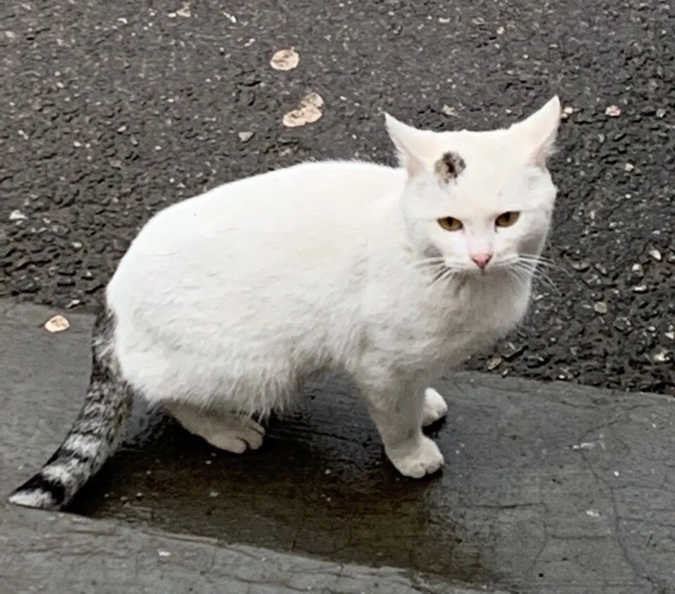 Он живет на трубах, его подкармливают: но скоро морозы, может не выжить.