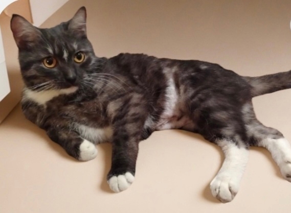 Кошка безумно ласковая, очень нуждается в контакте с человеком. Идеальная кошка компаньон по всем раскладам, очень интересный окрас, явно помесь с какой-то породой. Лоток идеально, ест сухой корм. Уже стерилизована, проблем не будет.