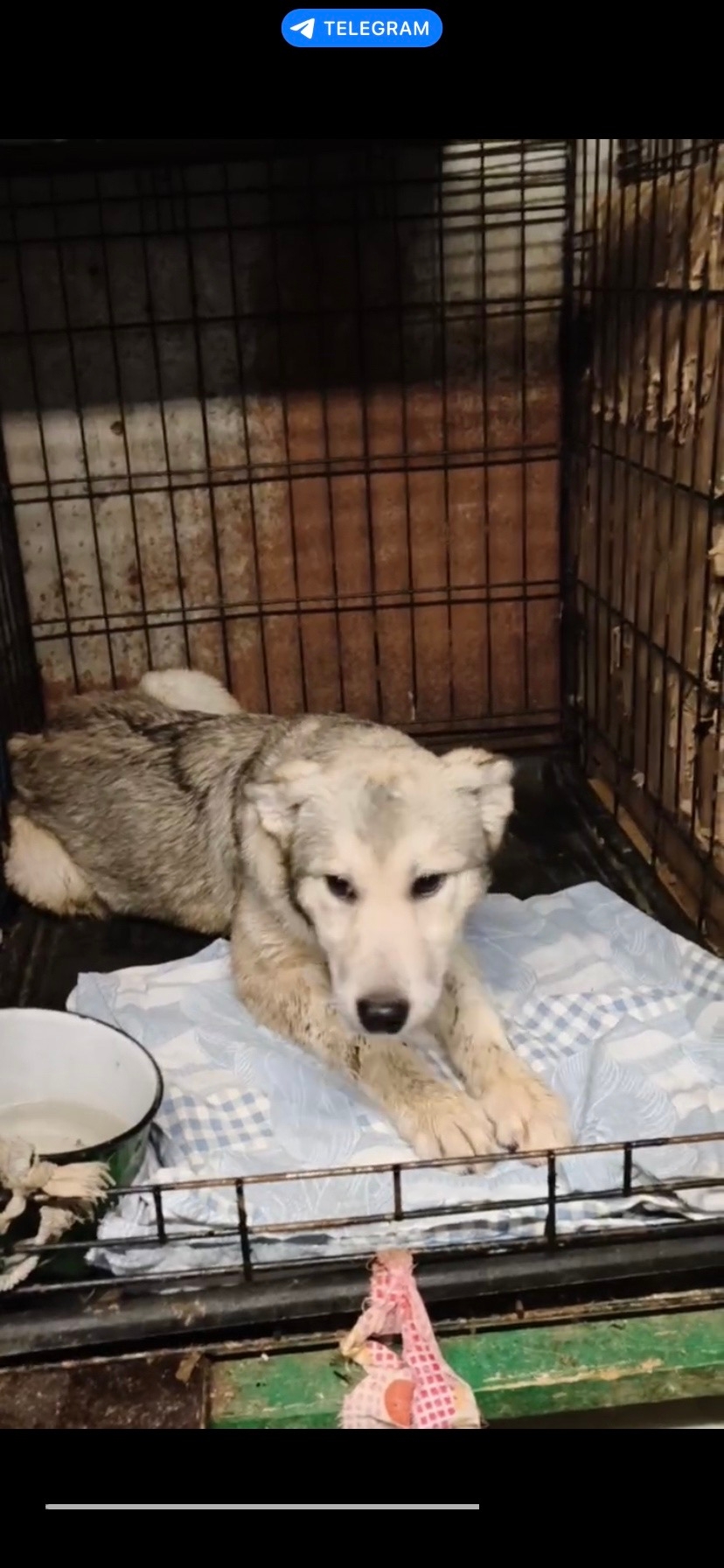 Сейчас щенок в приюте, сидит в клетке размером с неё, выгула там нет вообще, в туалет она вынуждена ходить под себя, другого варианта у неё нет. Как следствие лапы уже разъело от мочи…