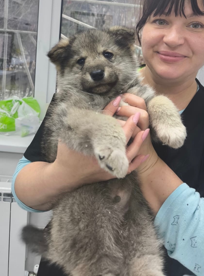 В подмосковном Ступино во время отлова попала собака с щенком. Малышу всего около 2 месяцев, и он остро нуждается в тепле и заботе.