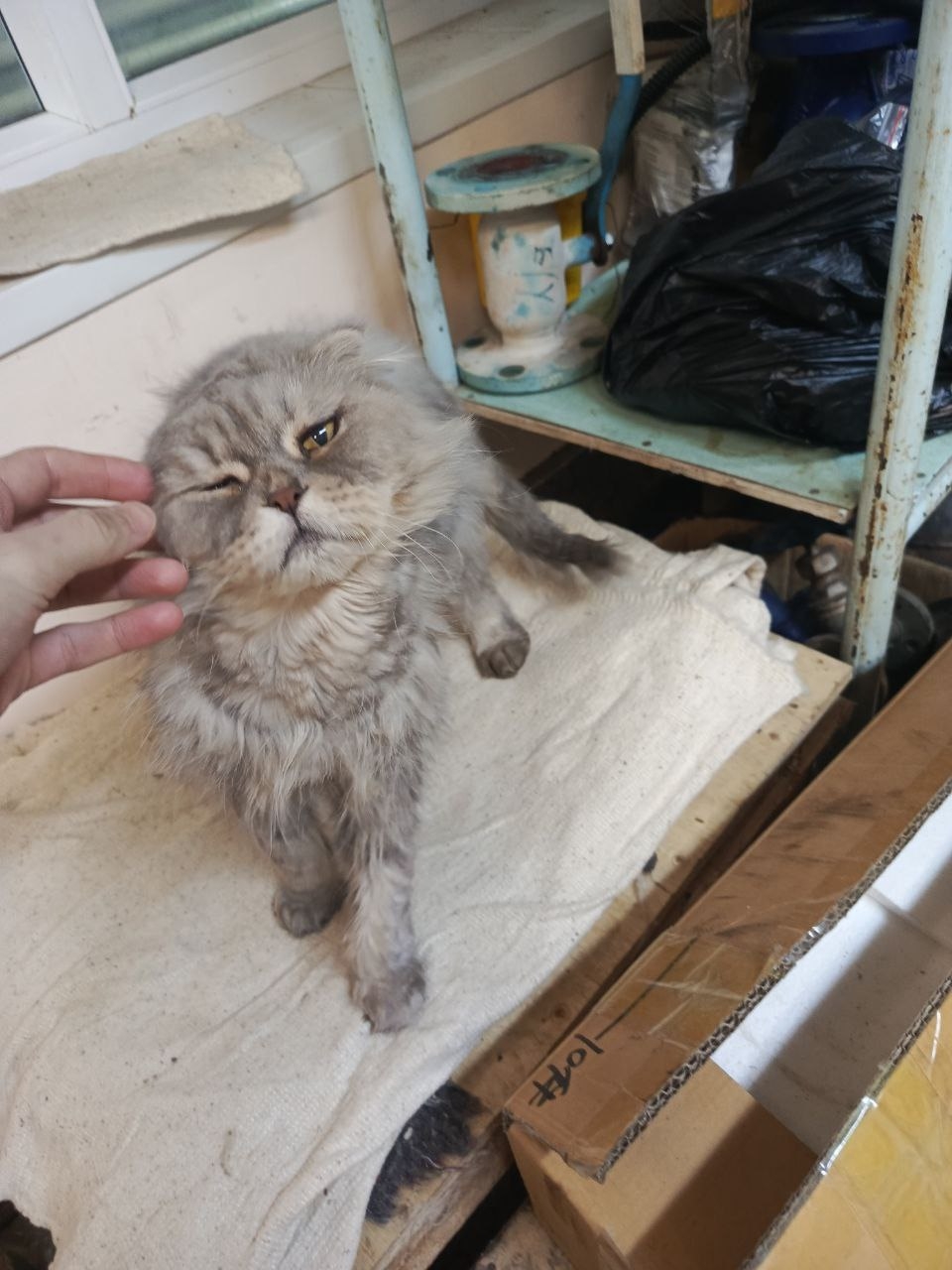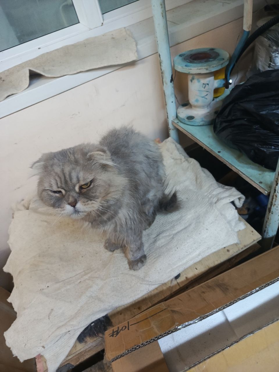 Ласковый, хоть и старенький котик. Поселился на заводе, грозятся выкинуть, куда он пойдёт я не знаю. На улице морозы. Жалко кота. Красивый, тянется к людям.