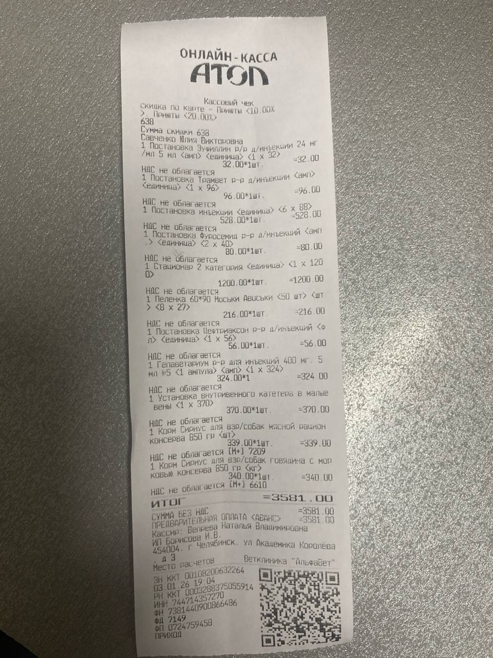 Получатель: Елена Владимировна С.