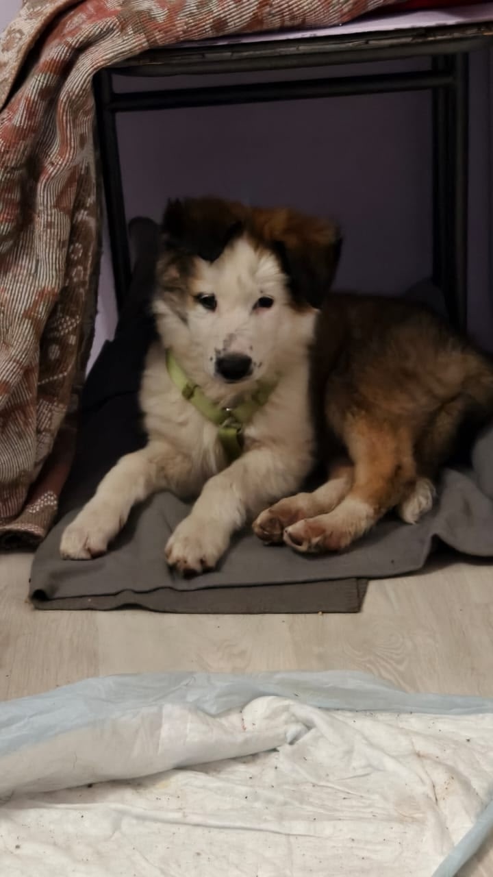 Найден щенок недалеко от Манихино/Высоково. Предположительно 3-3,5 месяца. Возможно подбросили на дачи или уехали,бросив.