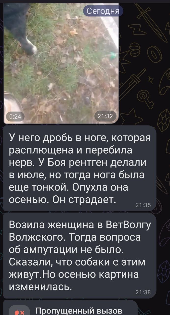 Когда-то Боя уже возили в Волгоград на рентген, но полноценного лечения он не получил и снова оказался на улице. Итог — инвалидность и гниющая заживо конечность.