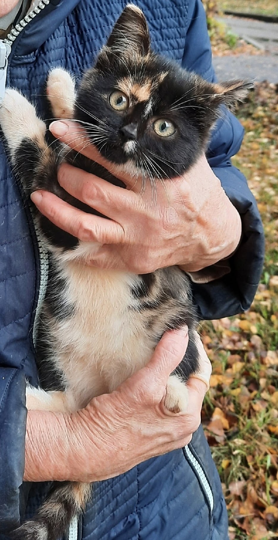 На улице замерзает крошечный трёхцветный котёнок-девочка. Ей всего 2–3 месяца, и она совсем одна в этом жестоком мире.