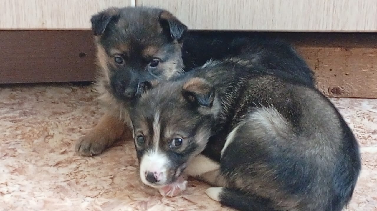 Возраст щеночков – примерно 1,5 месяца. Кушают сами, в туалет ходят на пеленку.