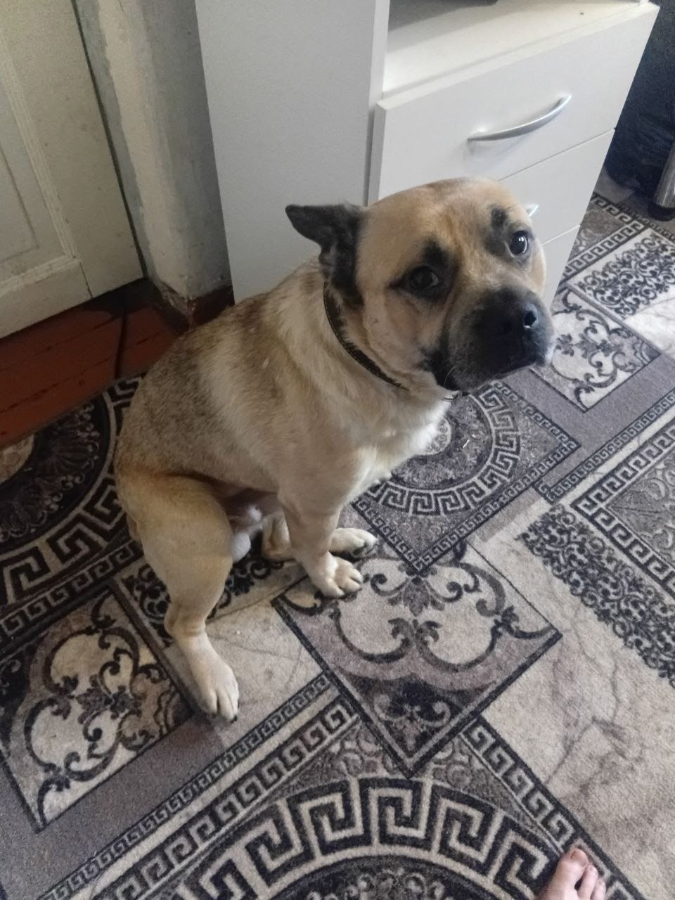 Мальчик 6 лет метис стаффа и французского бульдога.