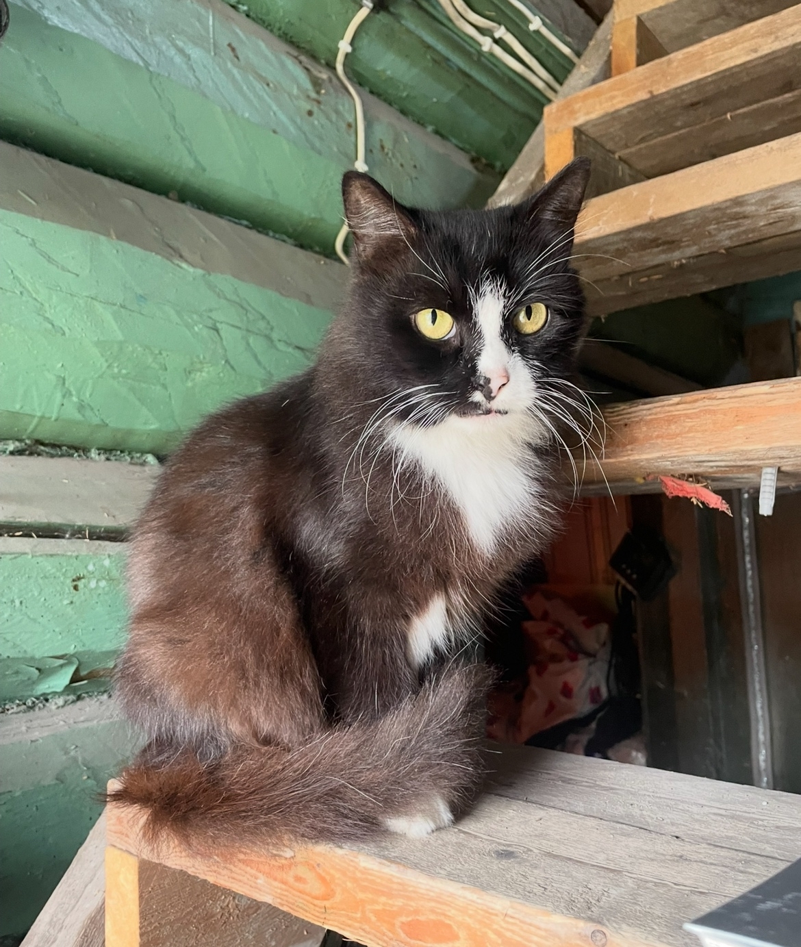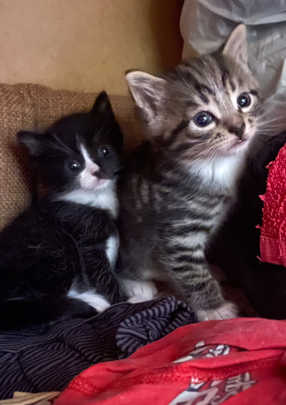 Одна из их кошек, будучи беременной убежала и нашла укрытие у нас на чердаке. Родила двух котят.
