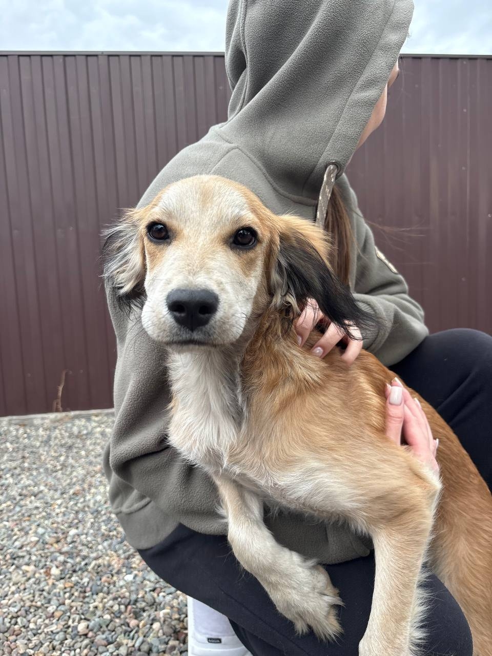 Прибилась собачка, молоденькая, очень добрая и игривая. Похожа на смесь КОКЕР-СПАНИЕЛЯ. Чуть ниже колена, подшерстка нет. Очень просится в дом, скорее всего была домашняя. Ночью на улице дрожит, зимой не справится. Срочно ищет дом.