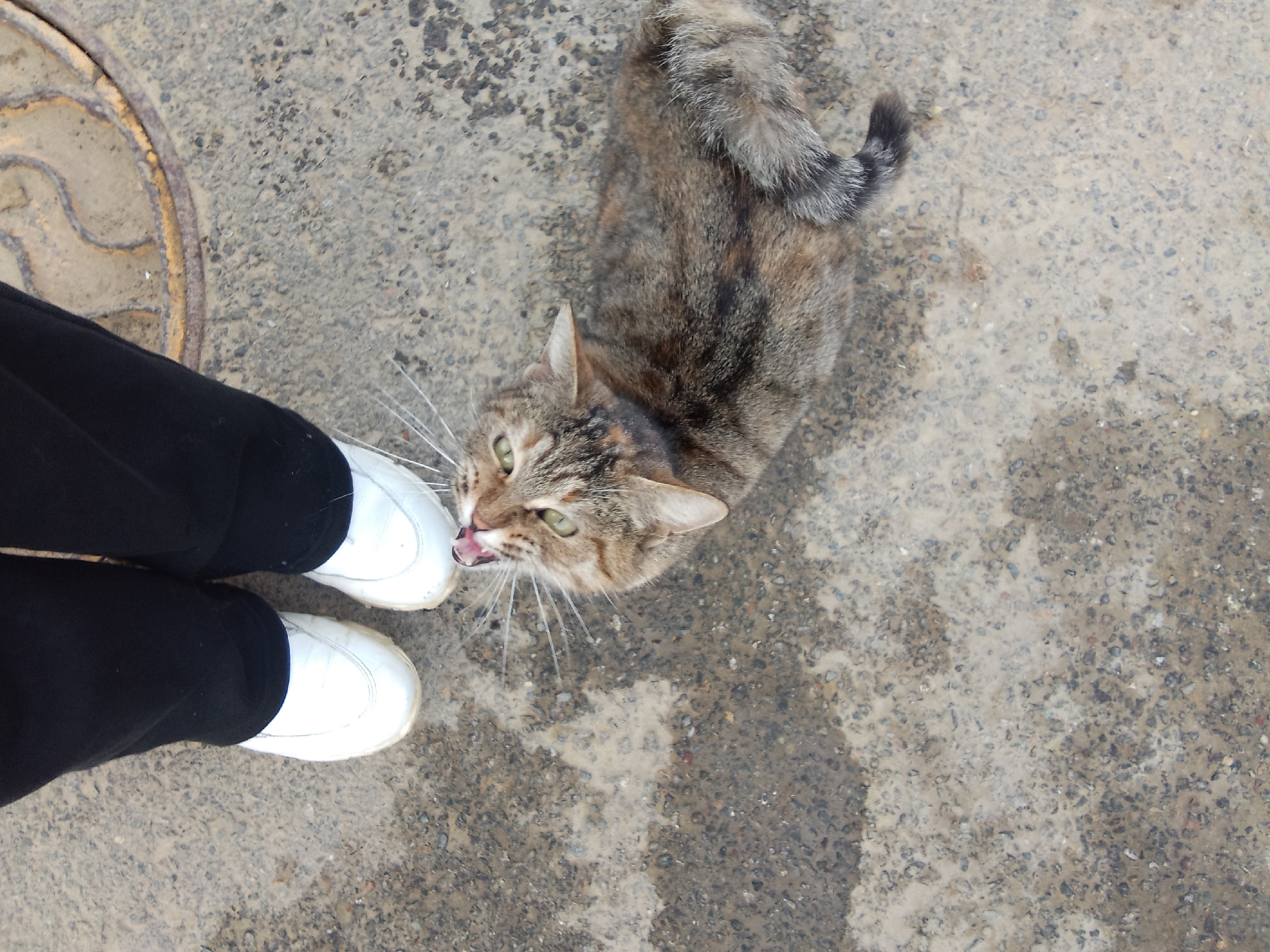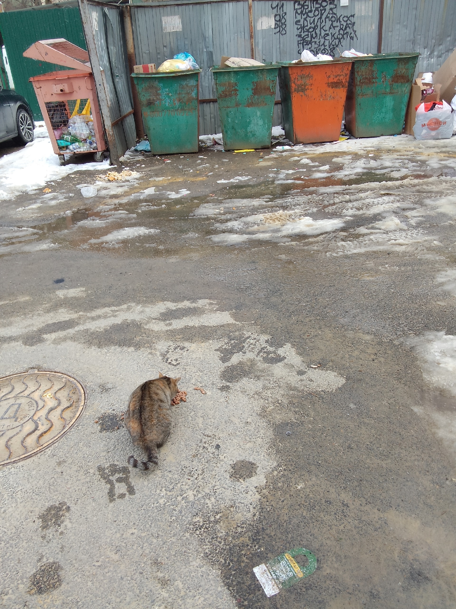 Встретила вот такую красоту возле мусорки, около школы номер 29 и спортивного центра юность. Сидела на люке, грелась, я принесла ей 3 пакетика влажного корма, домой забрать не смогла. Может, кто тоже неподалёку живёт захочет подкормить или принести какой-нибудь домик, может быть потерялась или кто-нибудь захочет забрать себе? Сейчас на улицах прохладно, кошка сидит дрожит