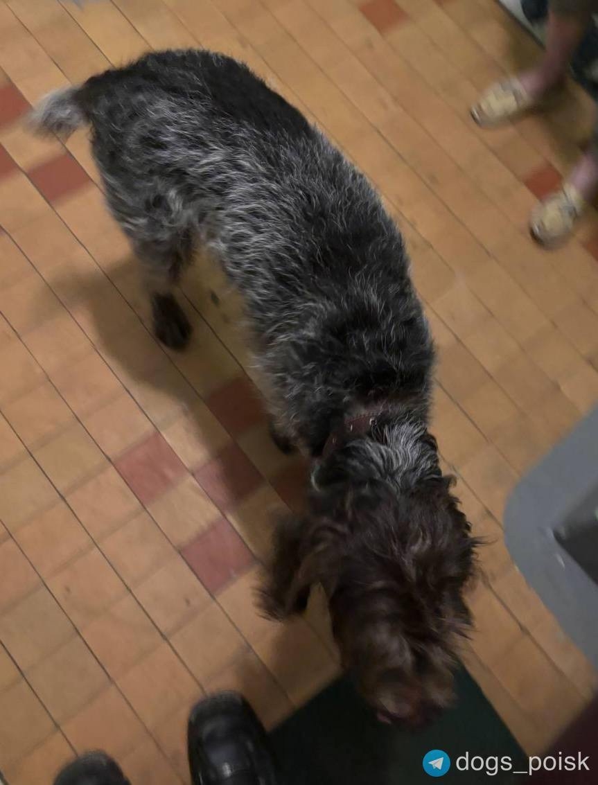Дратхаар (?). Среднего размера, серого цвета, было 2 ошейника
