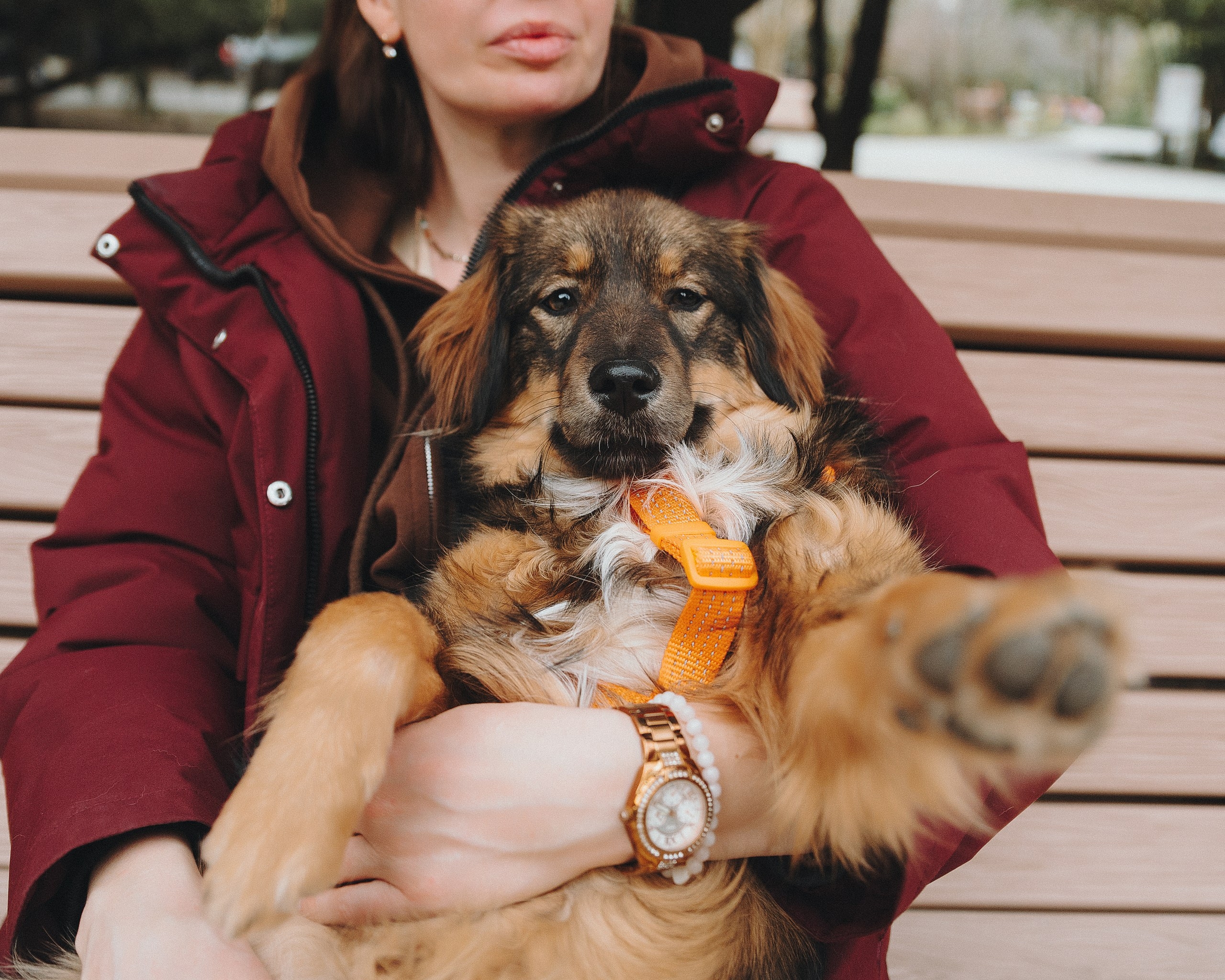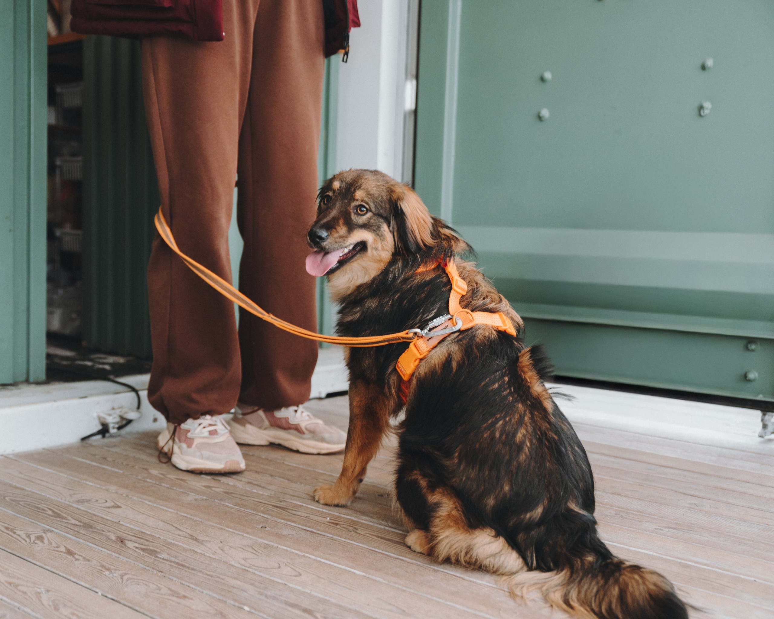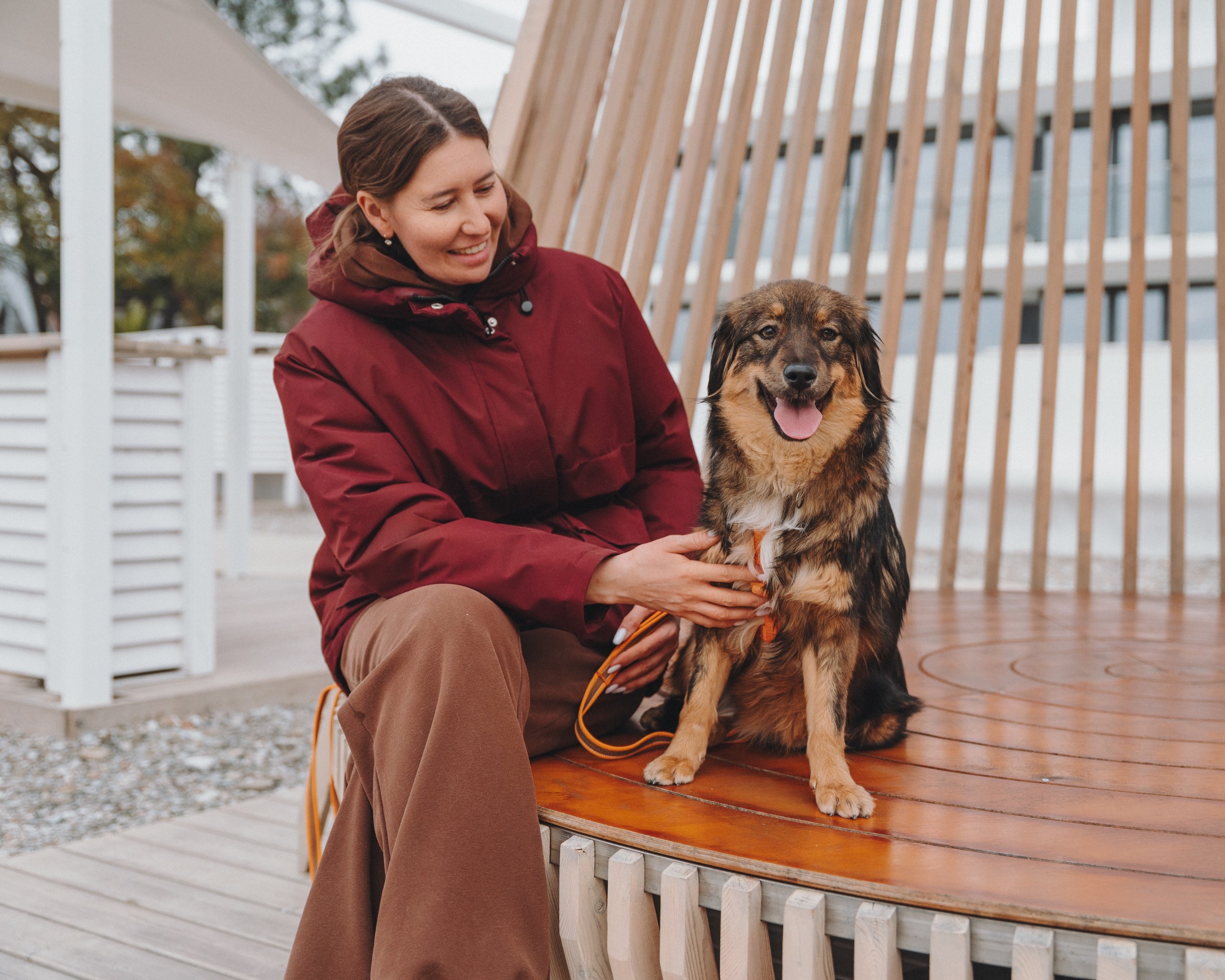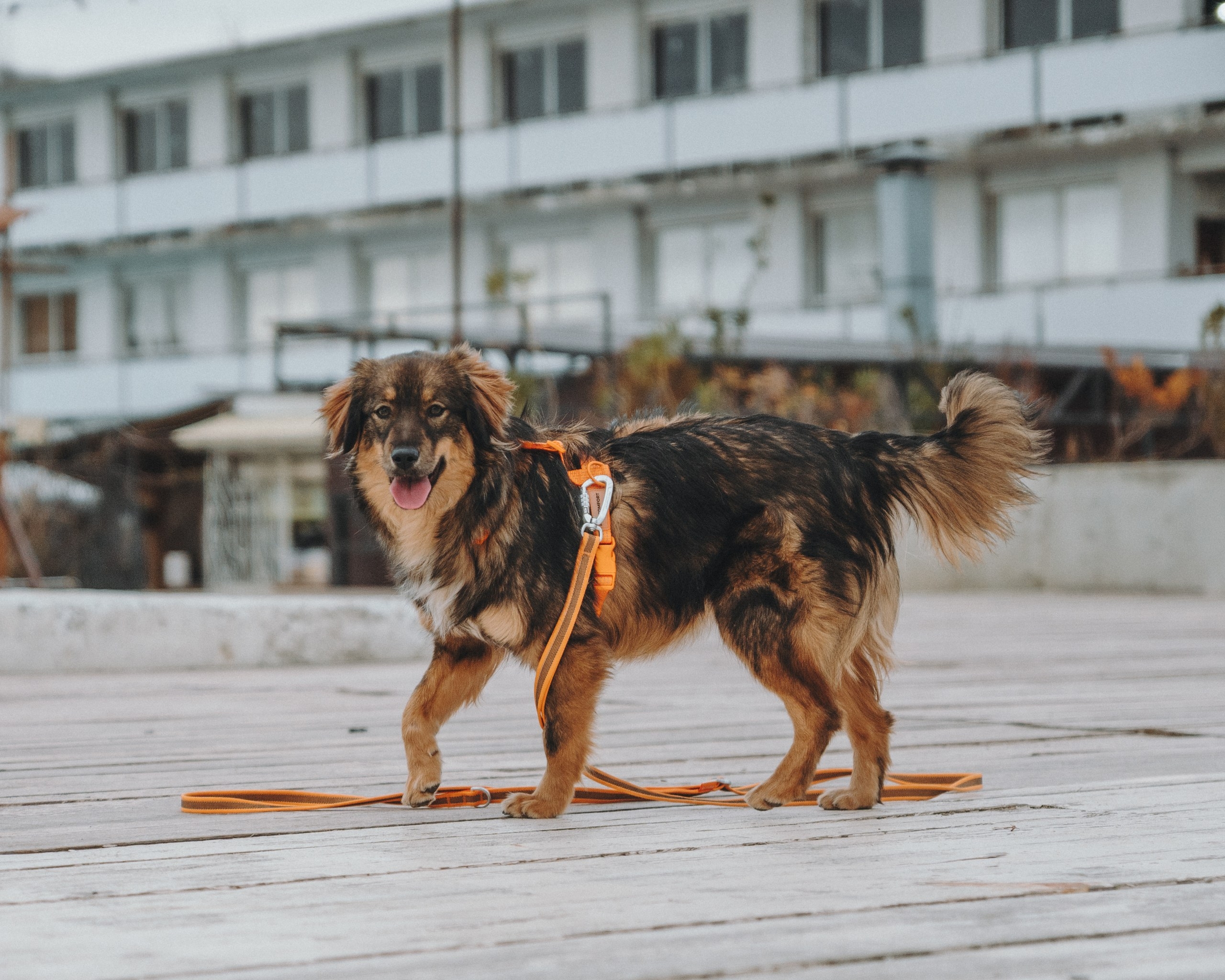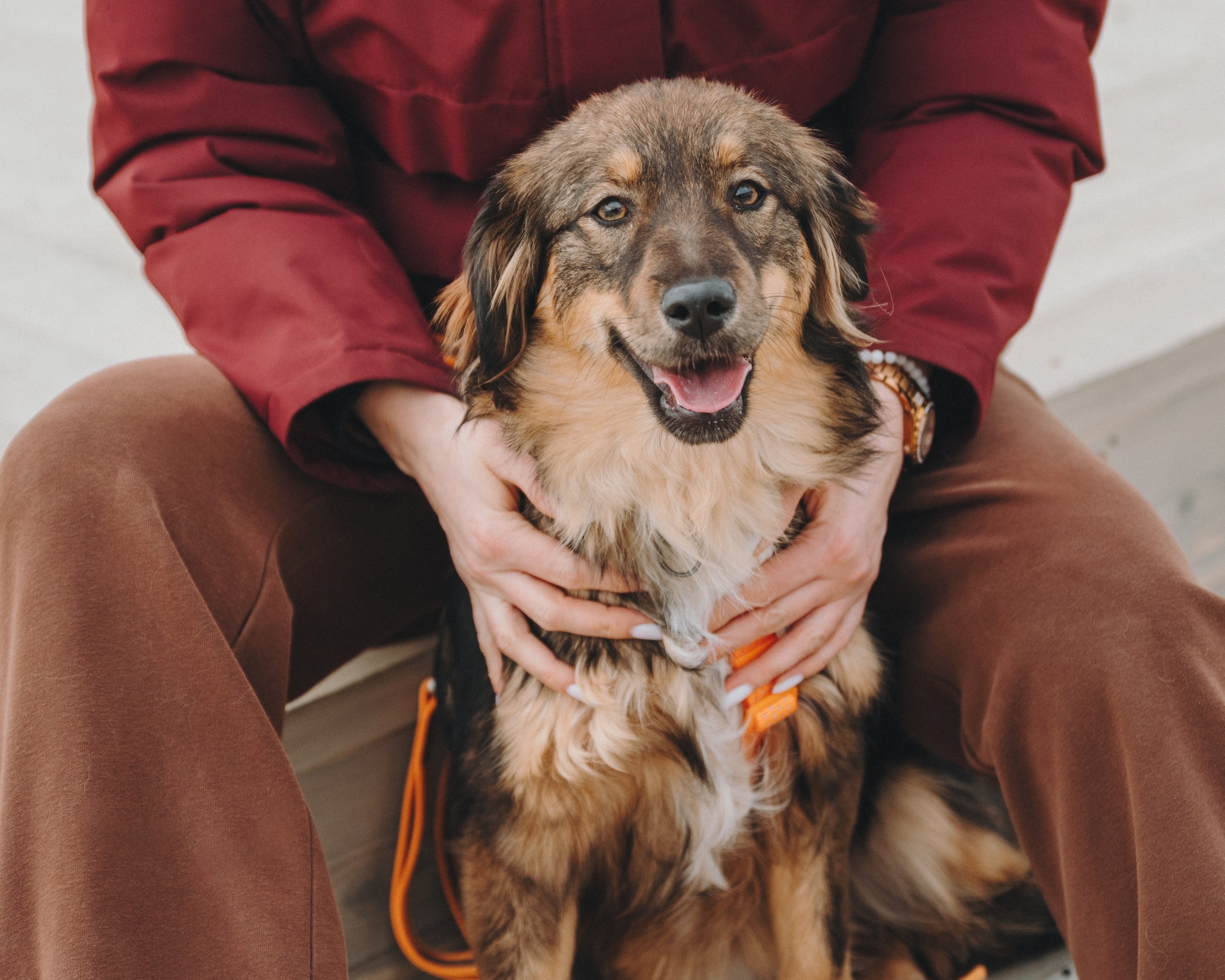 Она спокойно реагирует на велосипеды и самокаты, не проявляет охотничьего интереса к птицам (хотя весело пробежаться за ними может 😄).