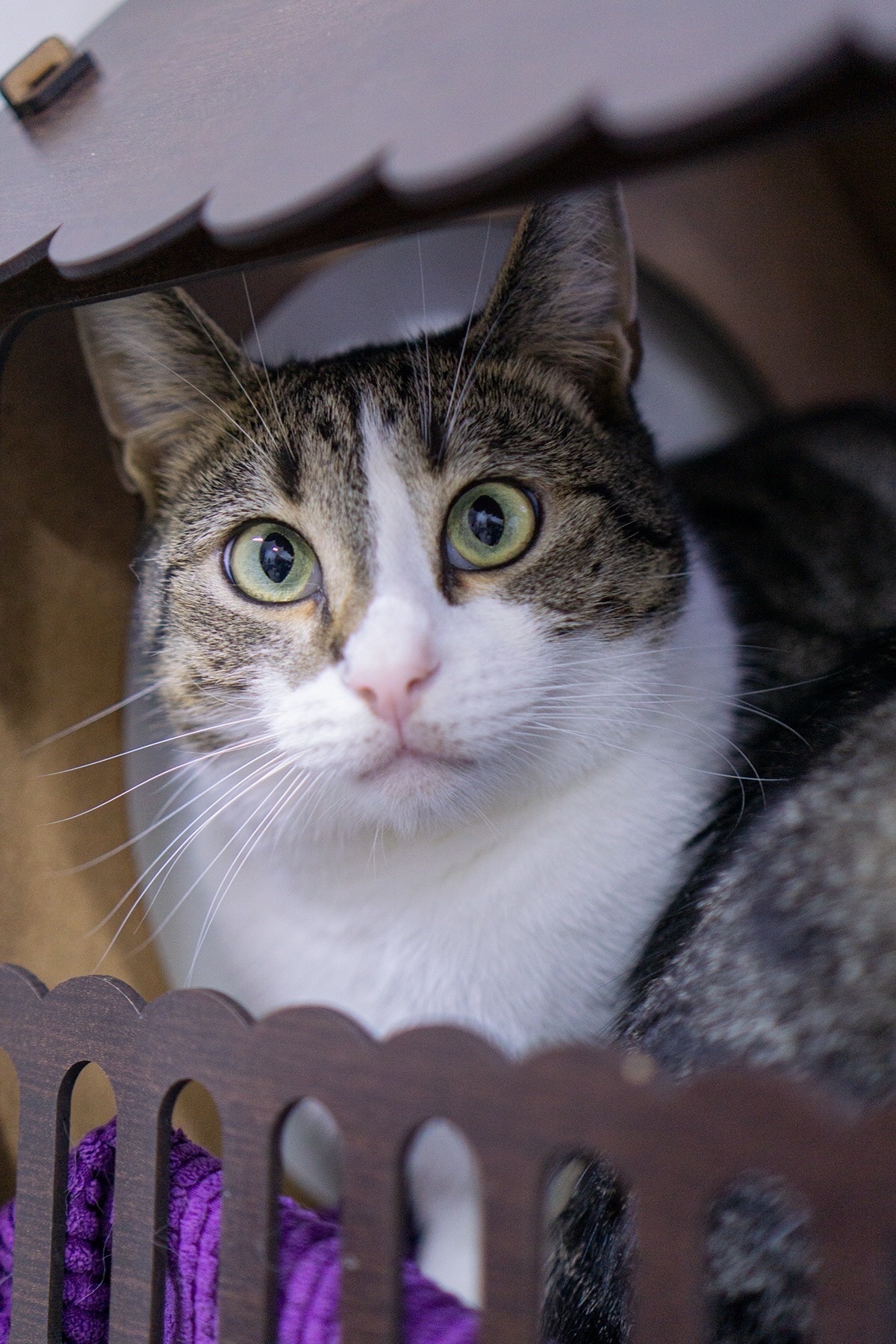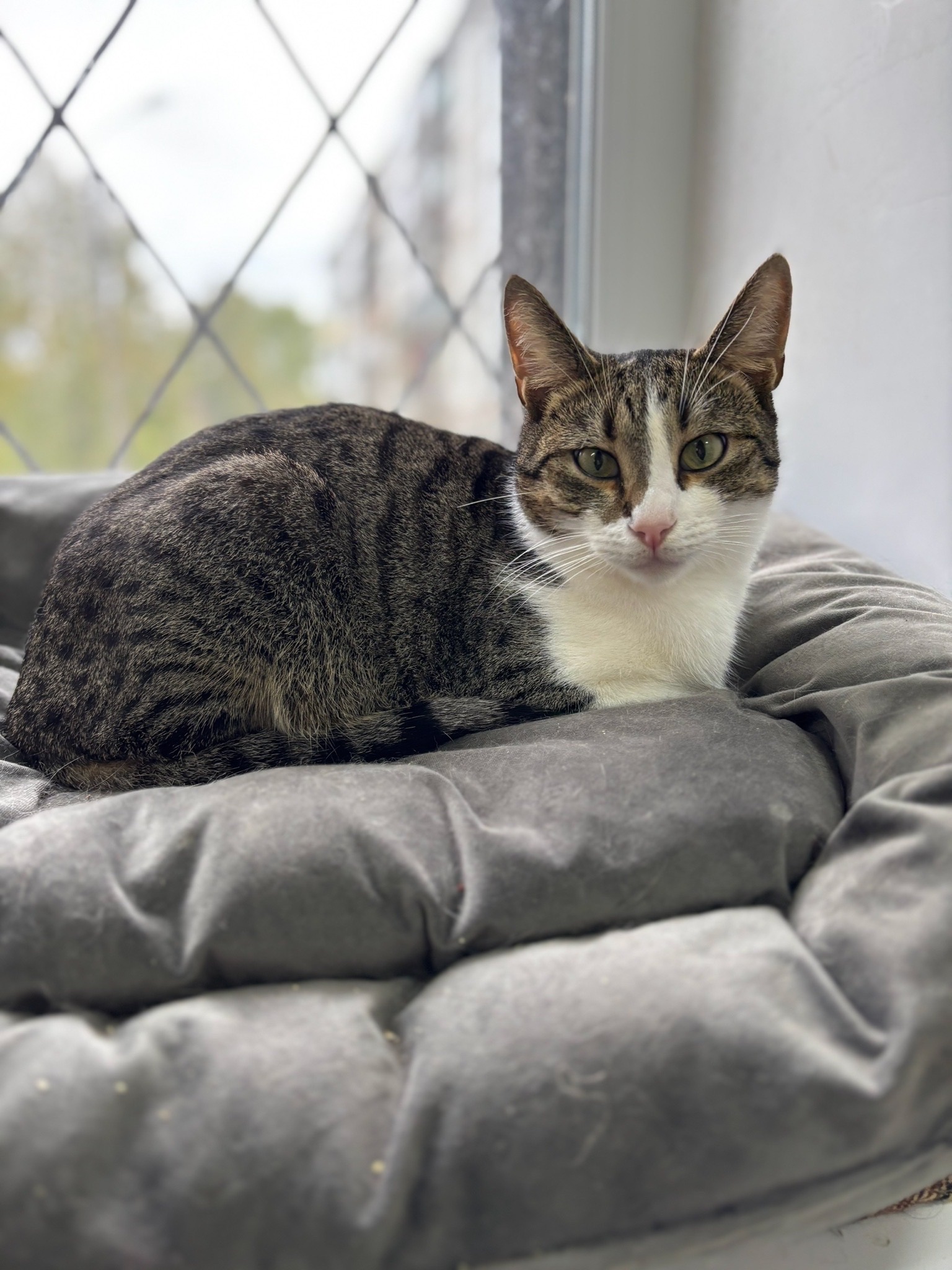 К людям осторожничает, котику не хватает внимания, для социализации ему очень нужно в семью!