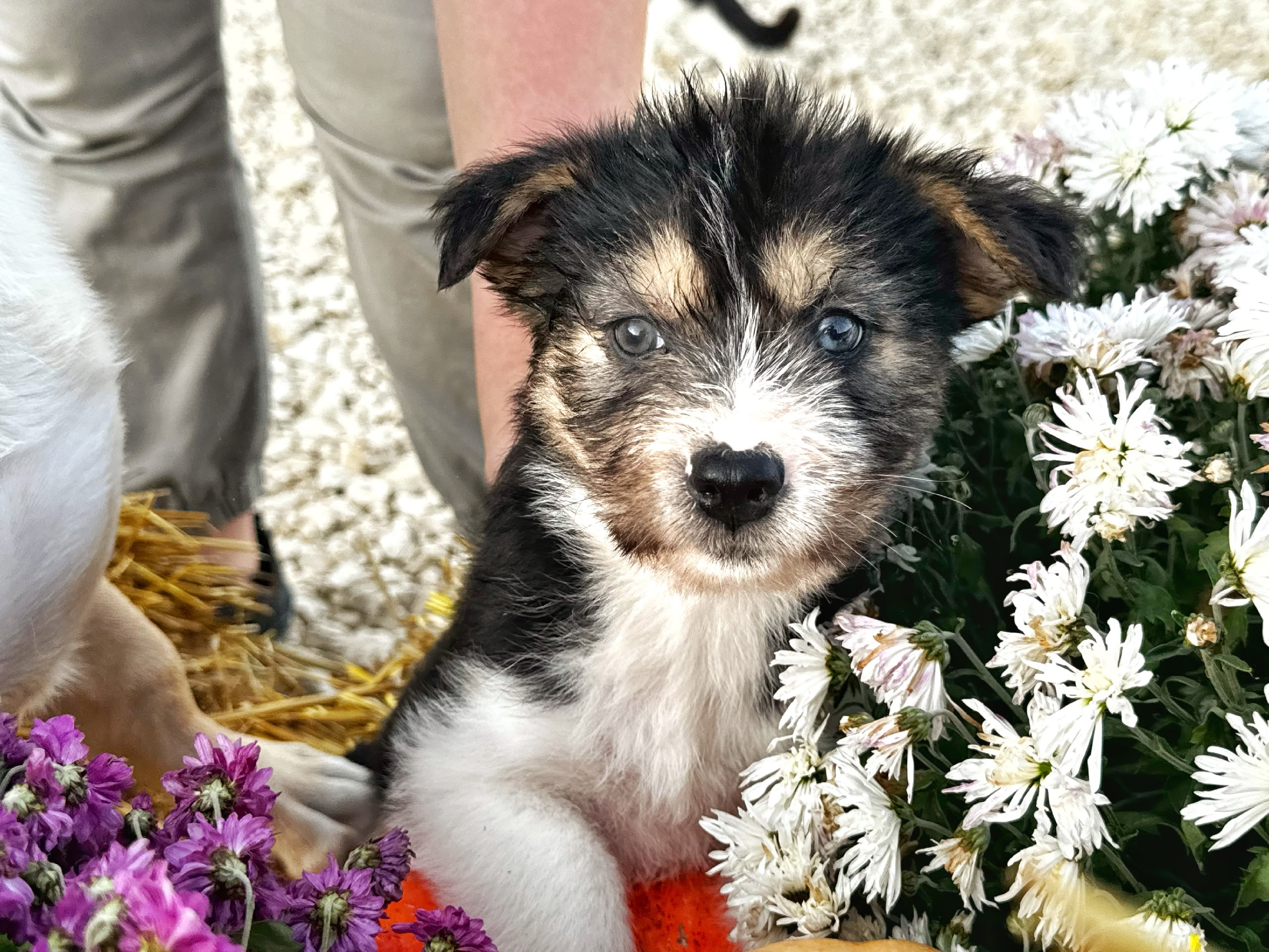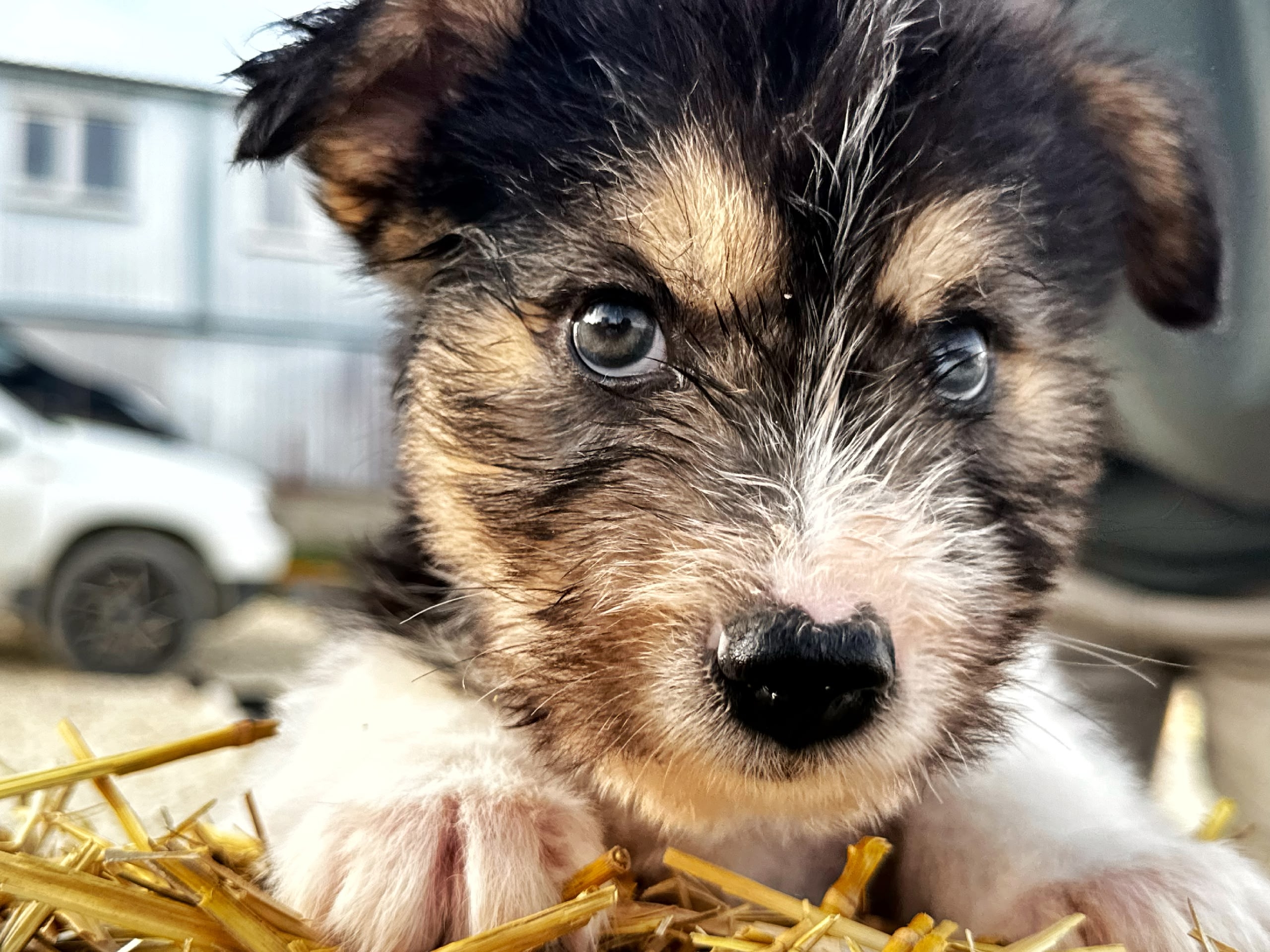 Мама небольшая болонка, папа-подлец ( предполагаем что хаски, из-за цвета глаз)