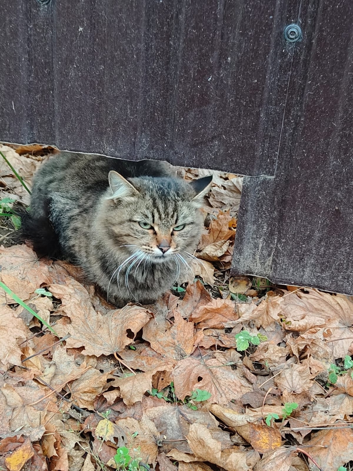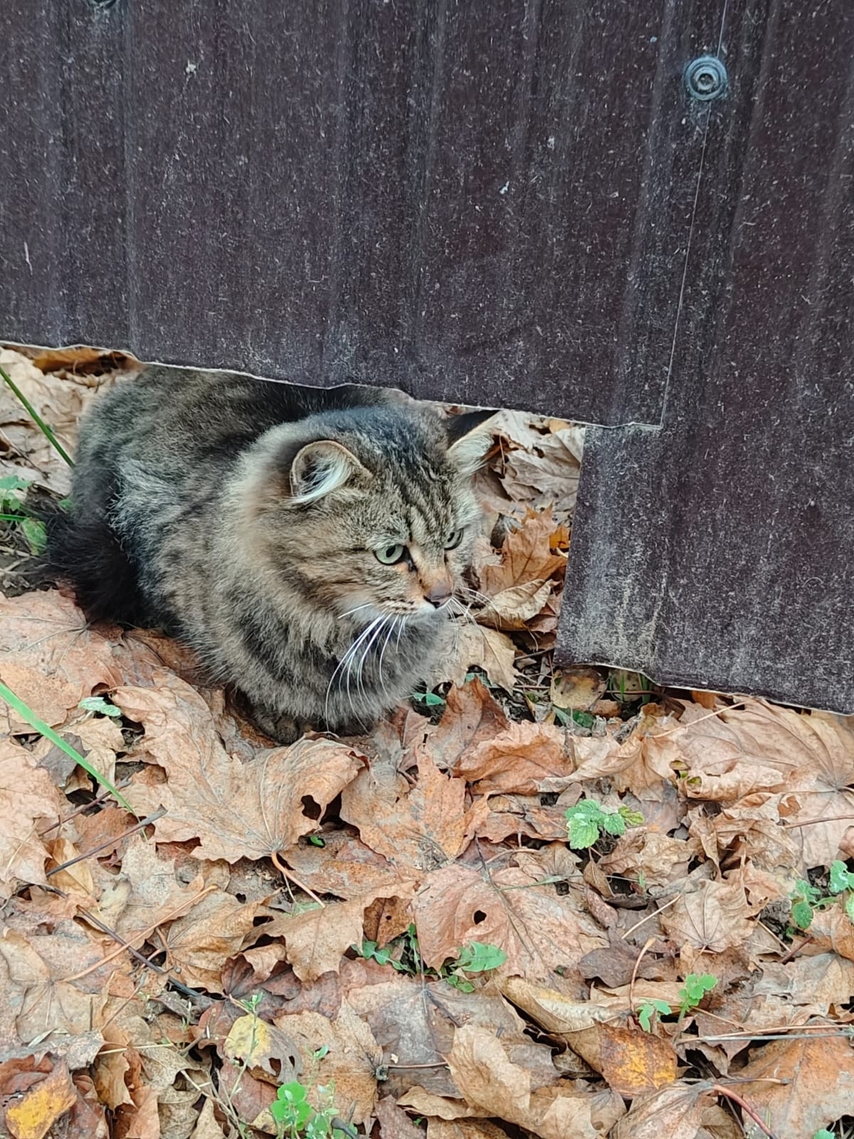 Тула, Пролетарский район, по ул. Епифанское шоссе как пару недель появилась кошка (или котик) в руки не даётся. Явно бывшедомашний, первое время постоянно мяукал – был в стрессе. Пушистый и крупный.