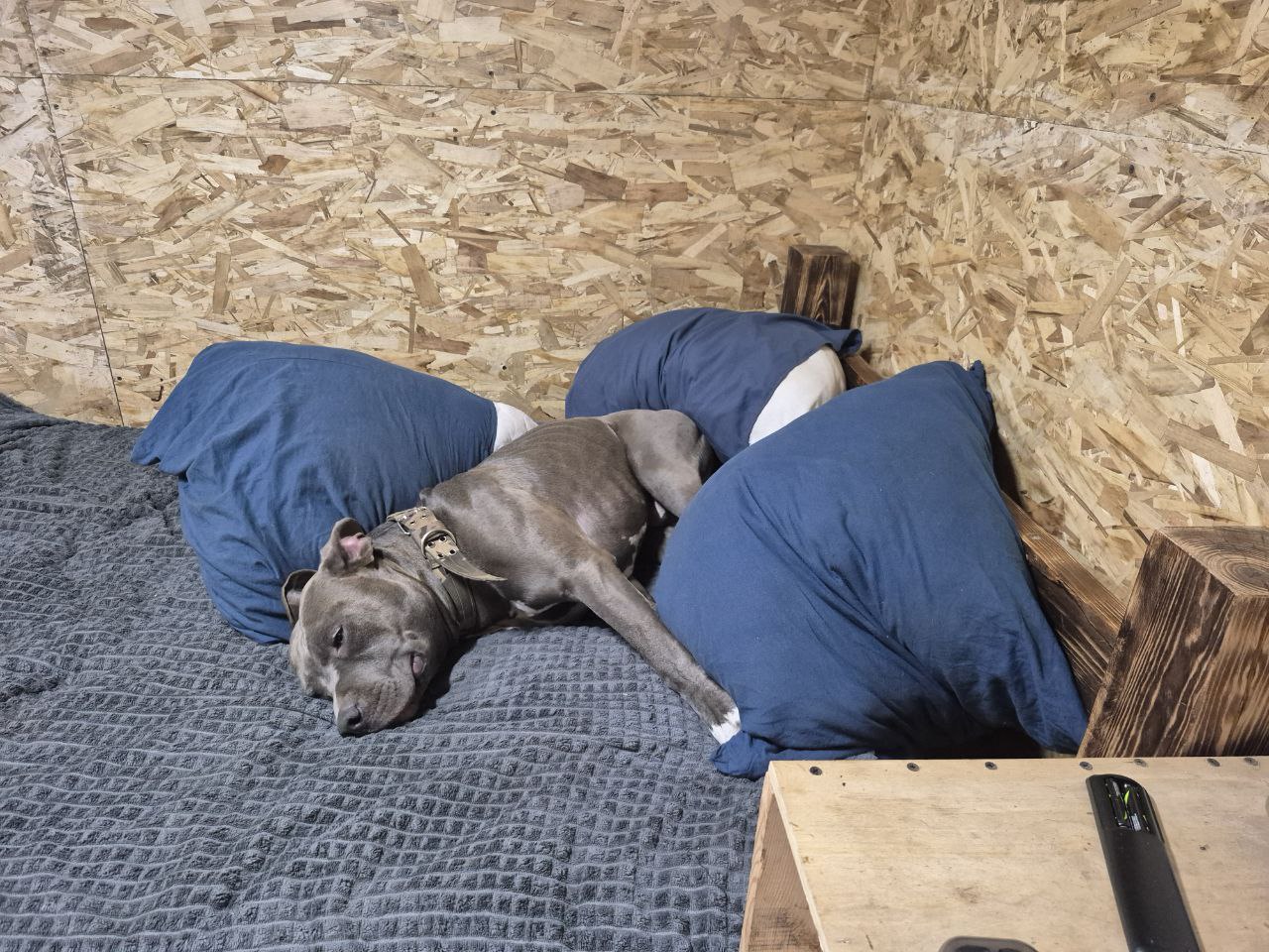 Американский стаффордширский терьер Вайс (по-домашнему Васян) ищет новый дом. В семье у ребенка началась астма, из-за чего хозяину пришлось забрать Вайса с собой на СВО.