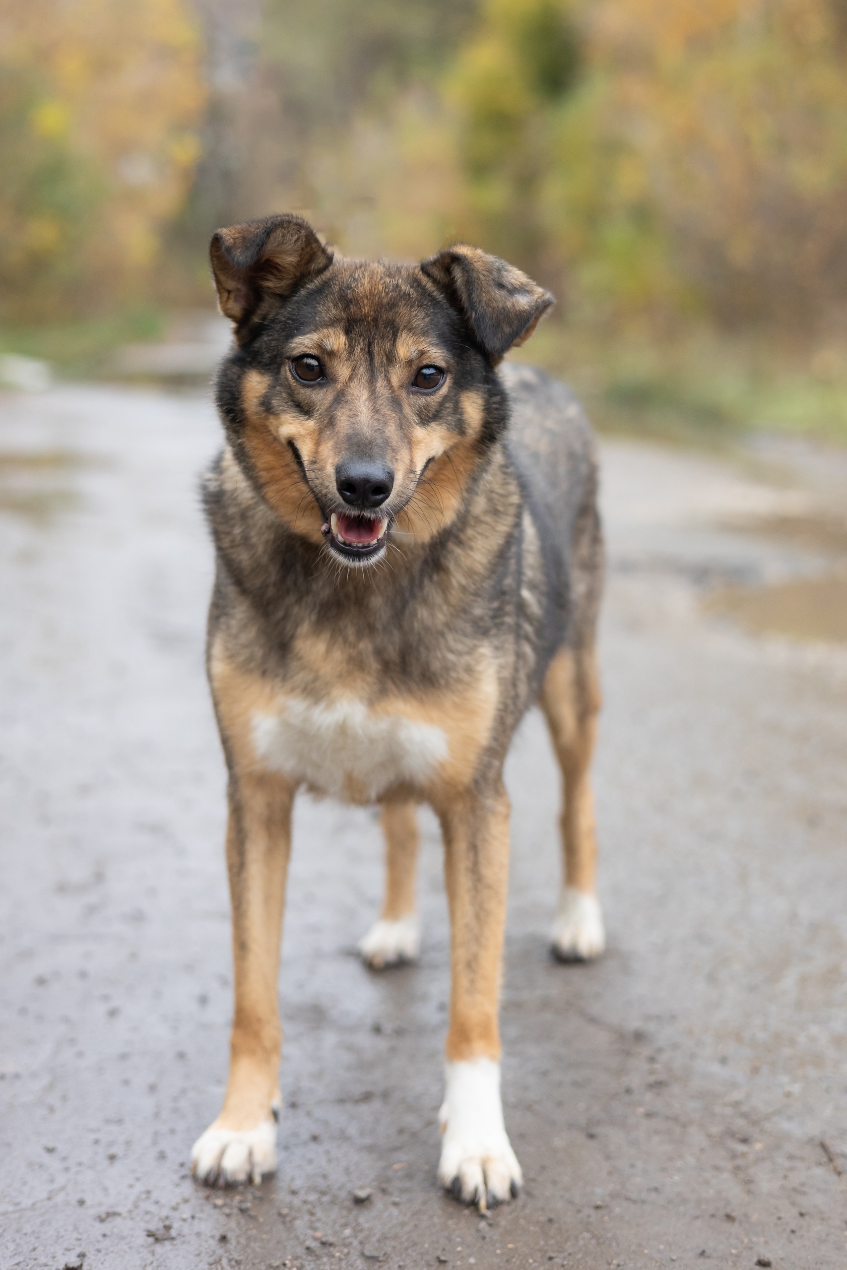 Каштанка – молодая некрупная собака (по колено) с красивой коричневой шерсткой. Она очень веселая, бойкая, обожает людей, и особенно детей!