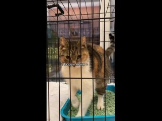 Кошеньку временно приютили в клетке, из которой она смотрит в окно и мечтает стать снова кому-то необходимой.