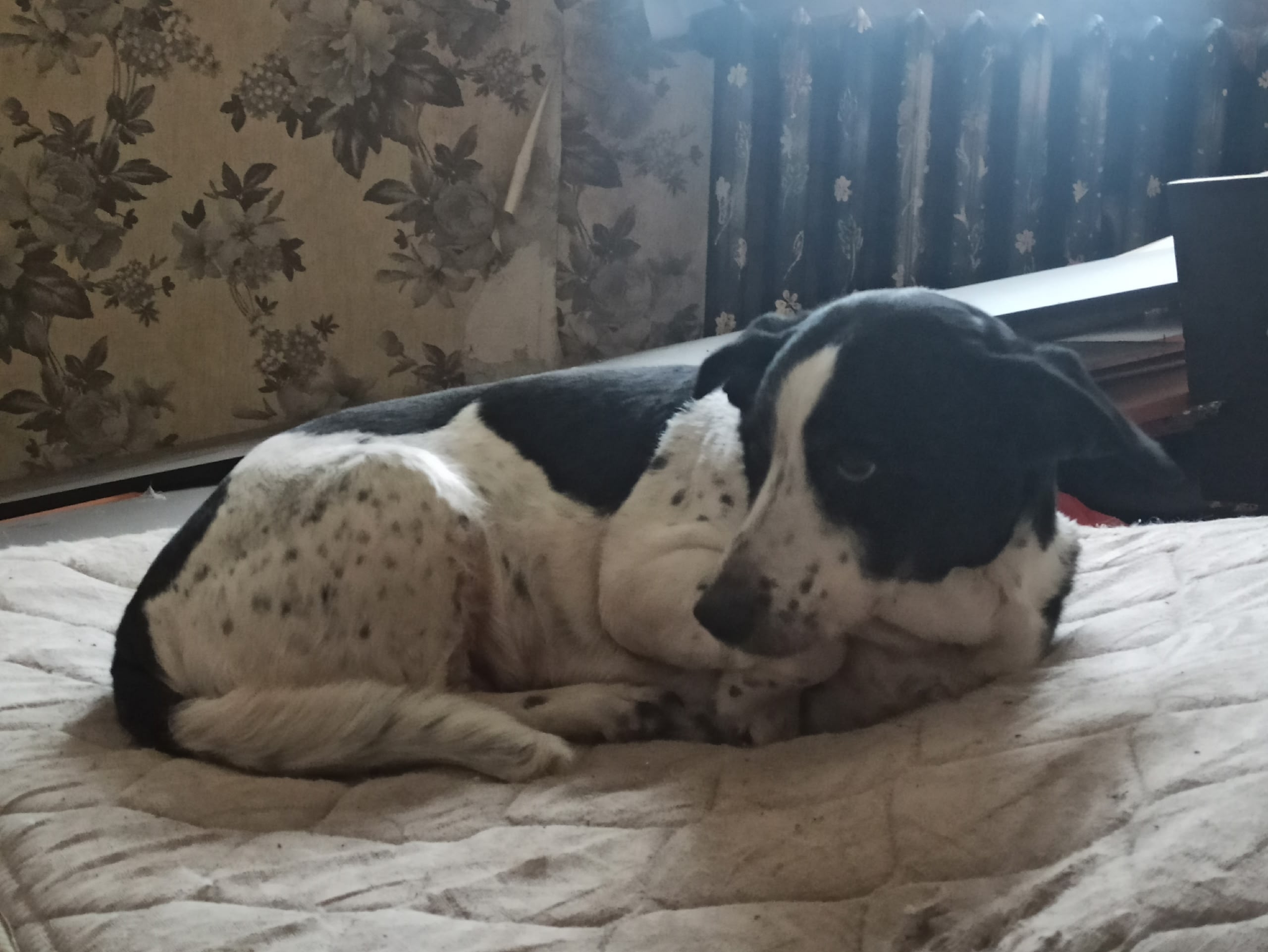 Собака в стрессе, лежит сиротливо на матрасе, не выходит на улицу, мало ест. 😢