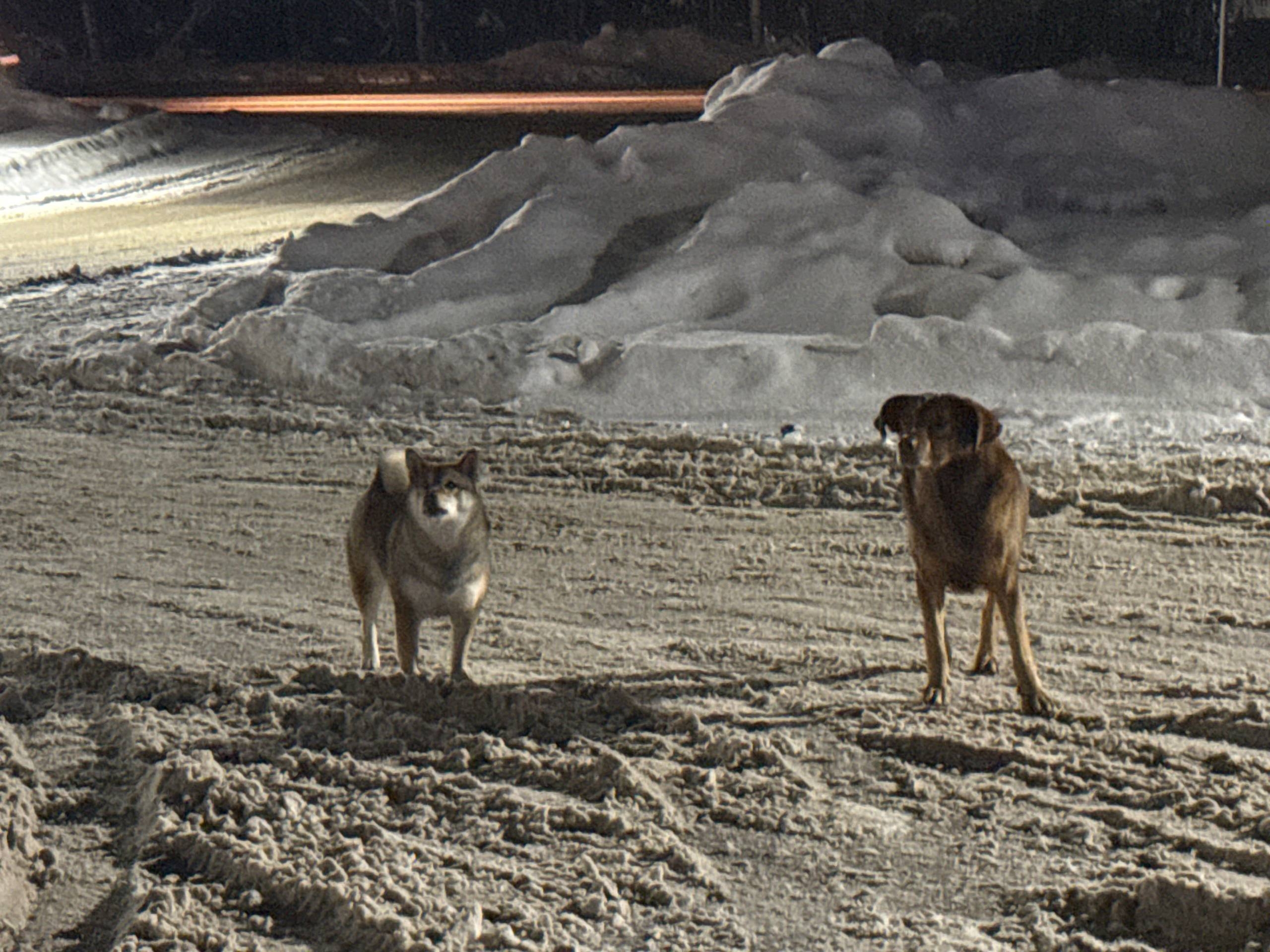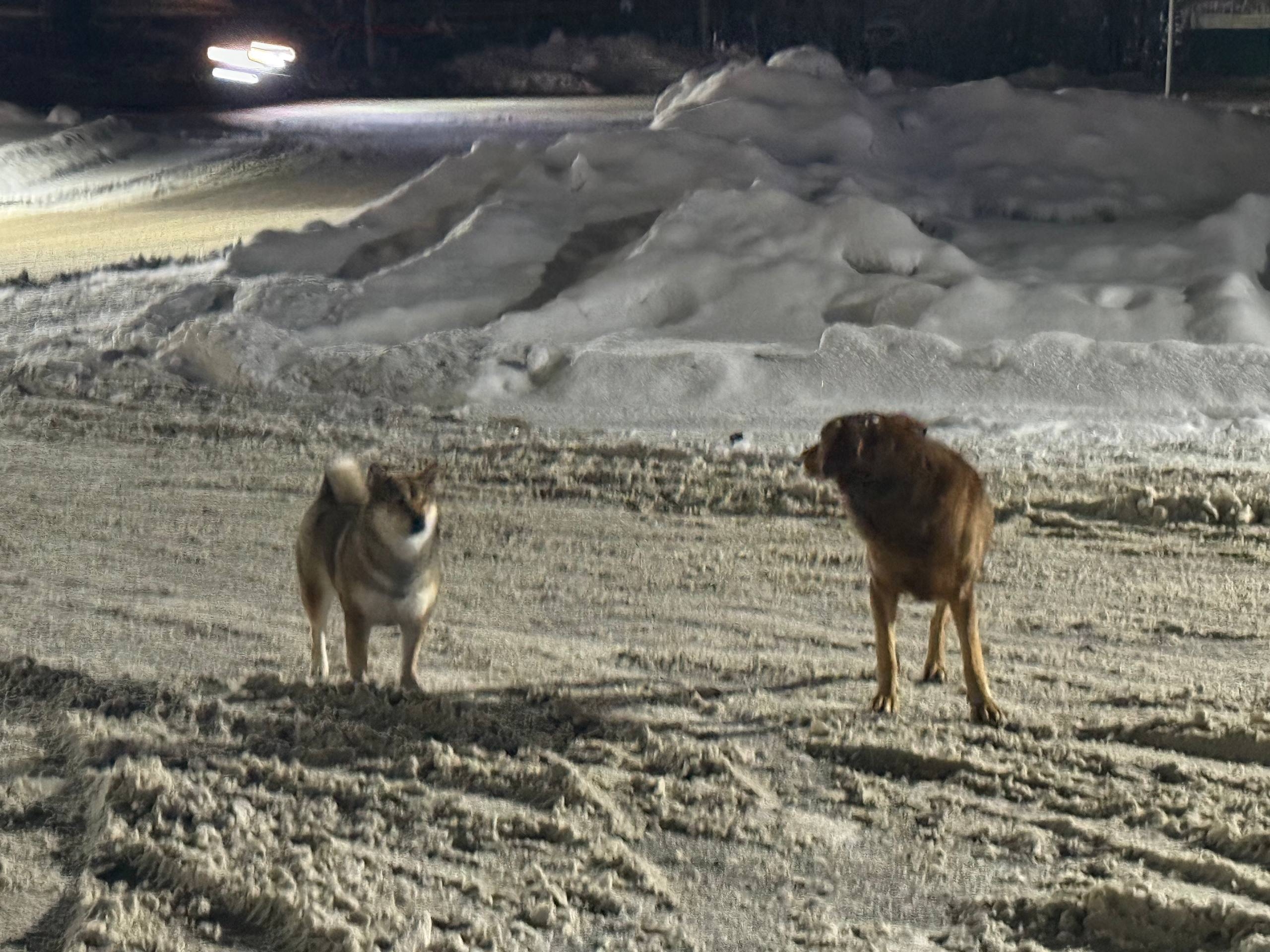 UPD: возможно одна из собак это пропавшая Сиба Ину, хозяйка просит..