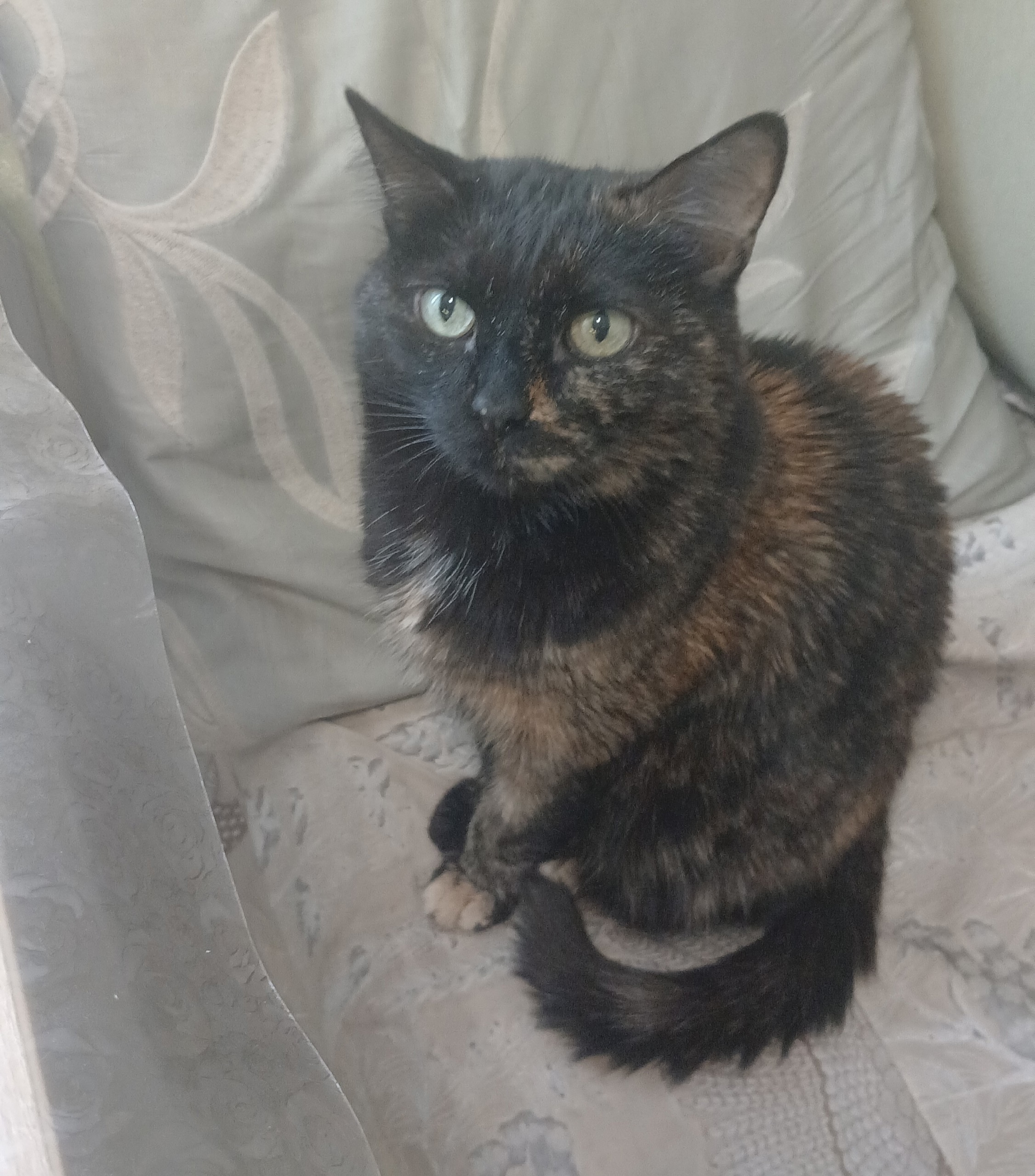 ✅Видели в районе школы №4 на улице Московской. Если кто-то увидит, пожалуйста, придержите🙏 Кошка очень контактная и ласковая.