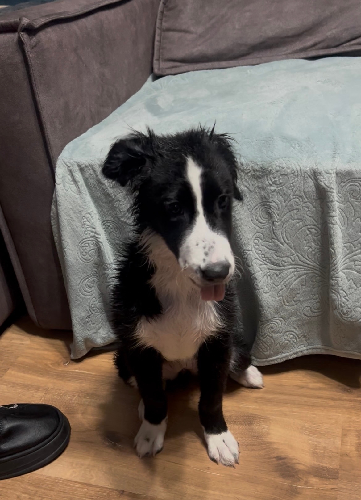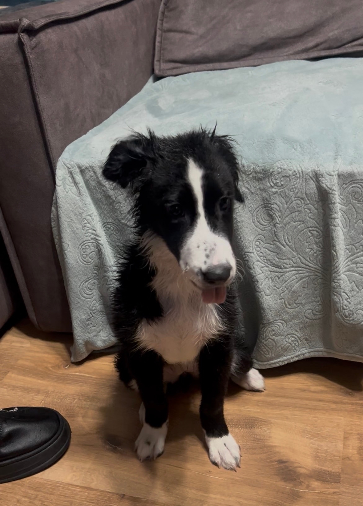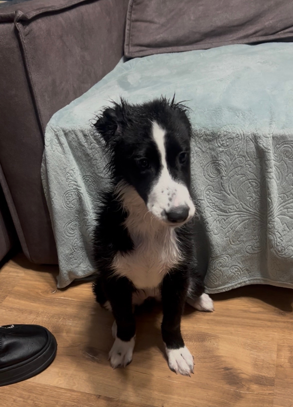 Увязался за моей собакой сегодня вечером в районе дома Исакова 118, забрали домой,на щенке был ошейник, но нет номера и никаких данных,местные собачники сказали что щенок уже три дня бегает по аллее на Исакова и хозяев никто не знает, по породе похоже на бордер колли, но как будто смешано, щенок явно маленький,очень активный,не агрессивный, хвост купирован.