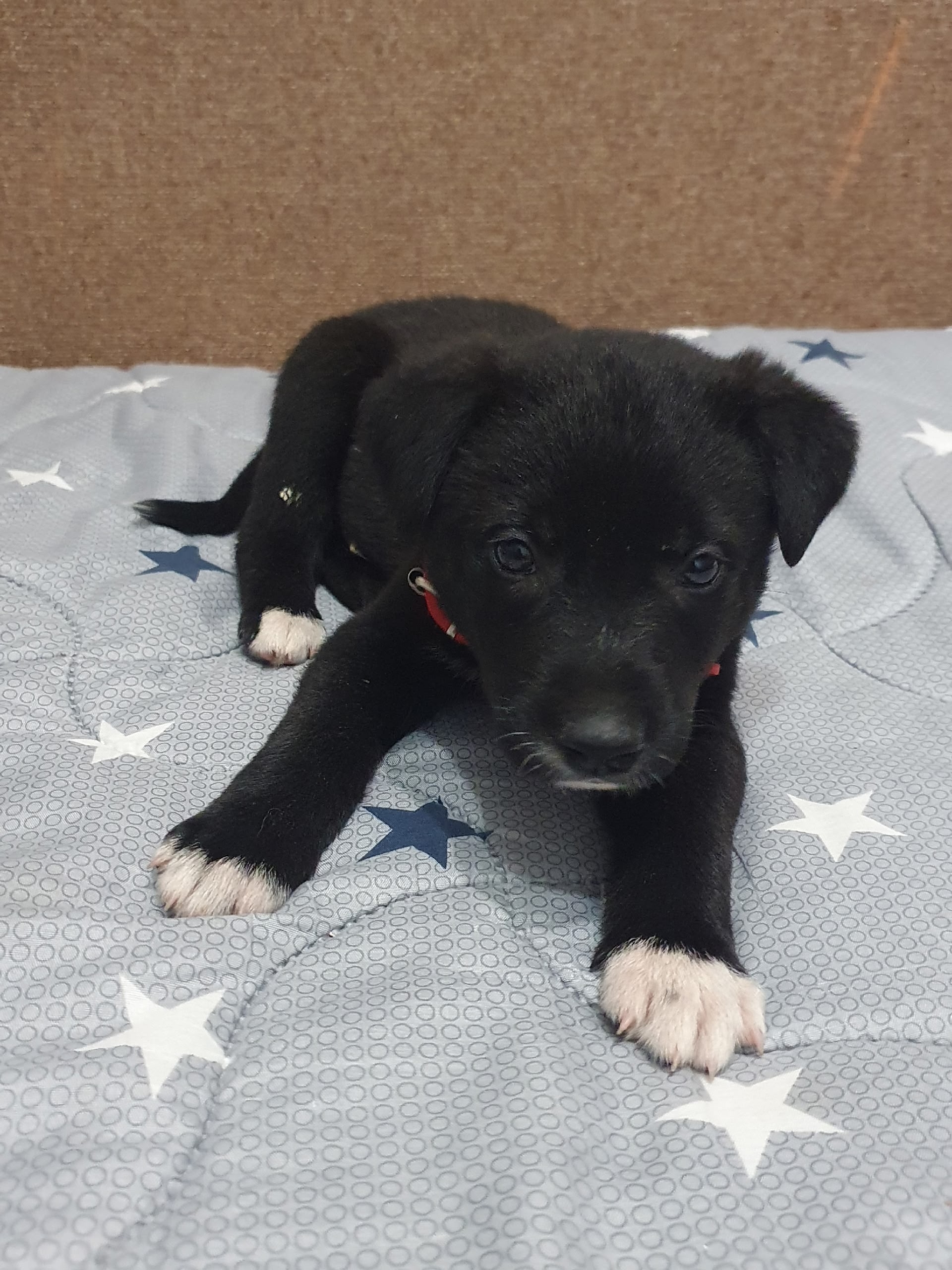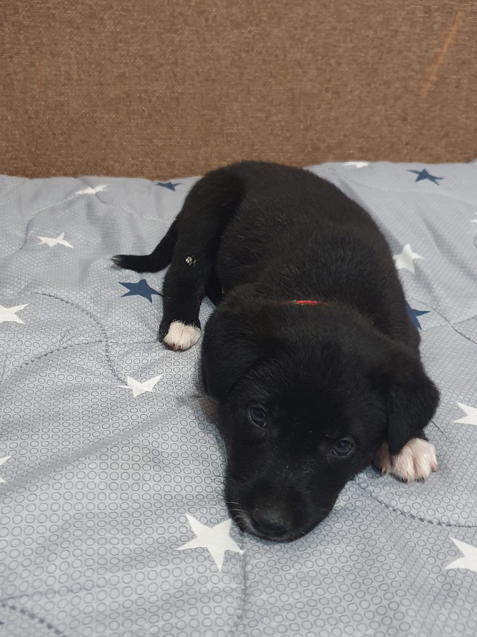 Возраст приблизительно 1,5-2 месяца.Окрас черный с белой грудкой и белыми носочками. Кушают натуралку.