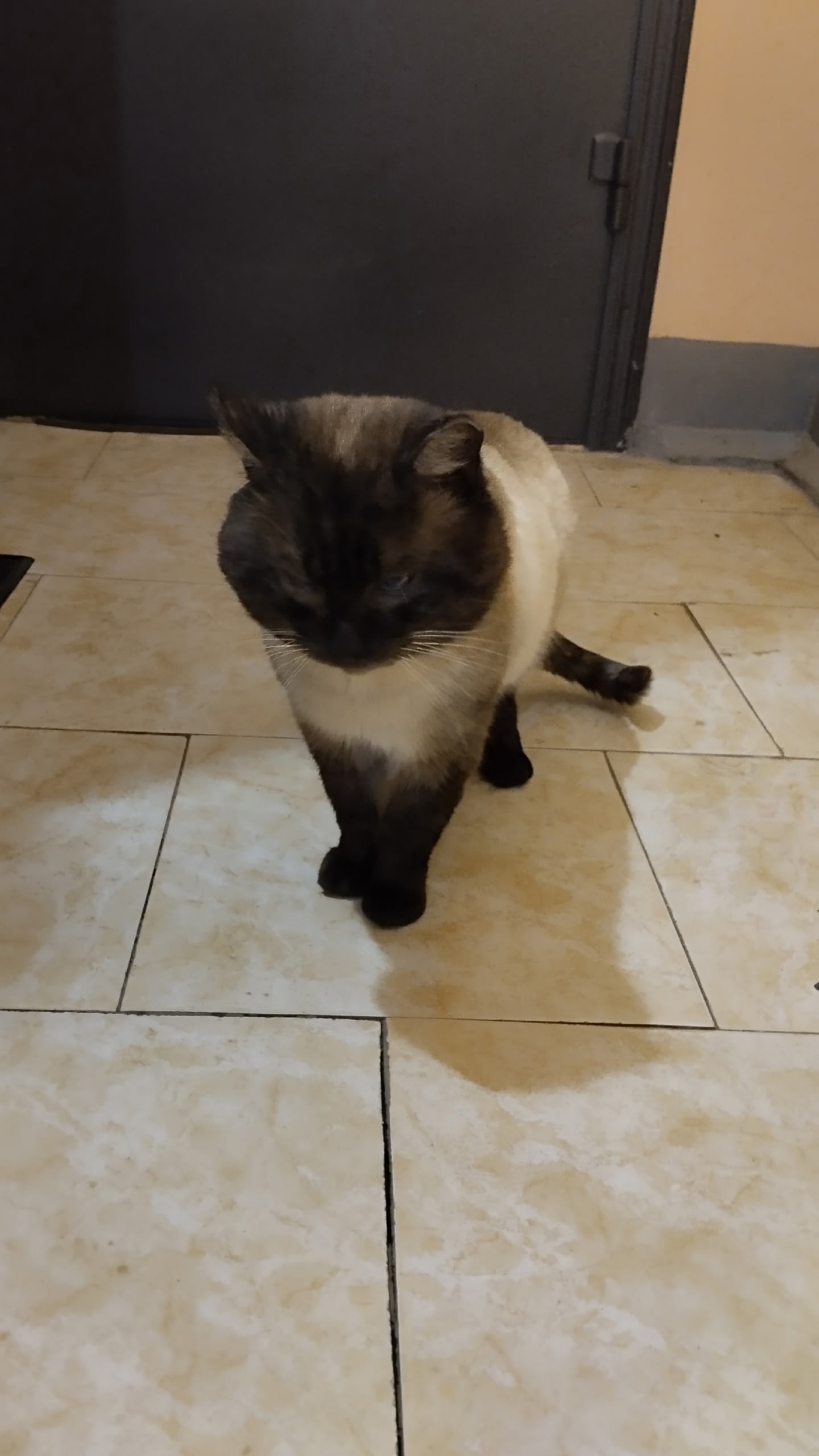 В доме 31 сиамский кот ищет свой дом. Лапкой двери пробует открыть. Наверное, перепутал подъезд или дом.