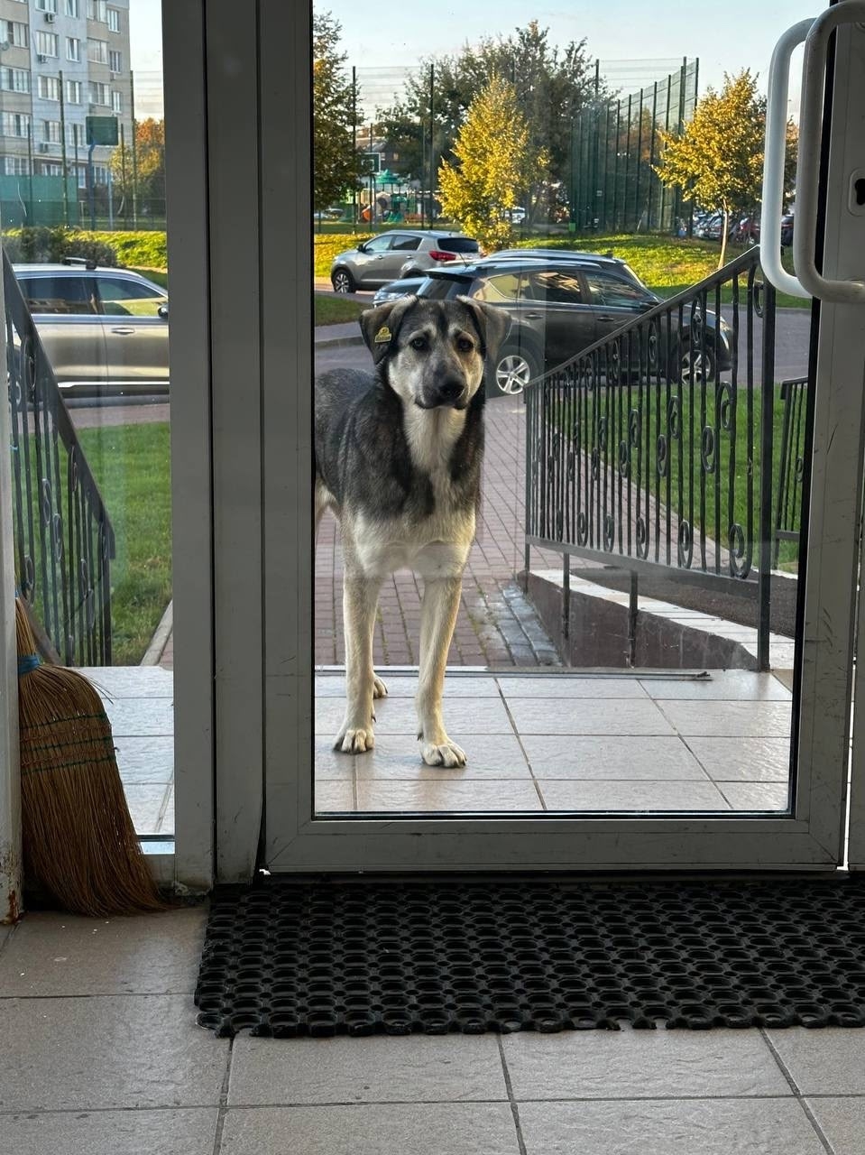 В Коломне МО на улице живёт пёс.