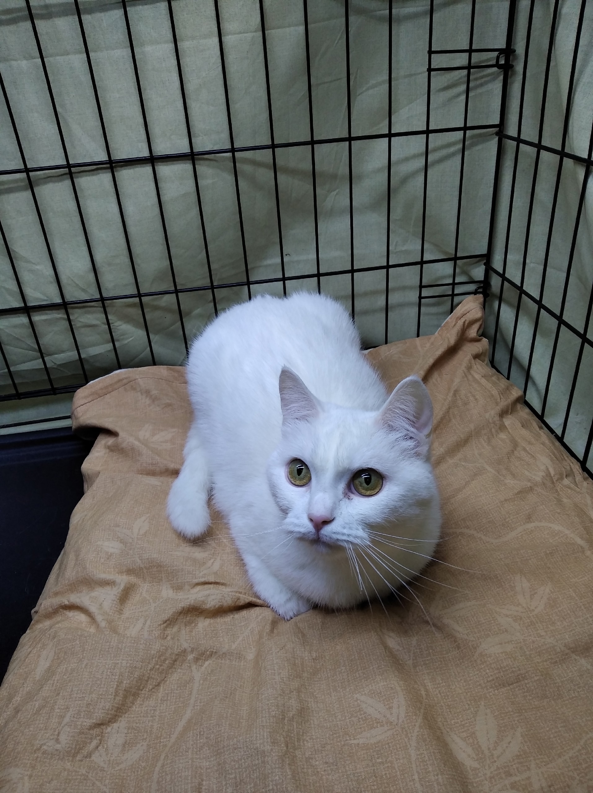 В поисках семьи,чисто белая молодая кошечка.С очень интересным..