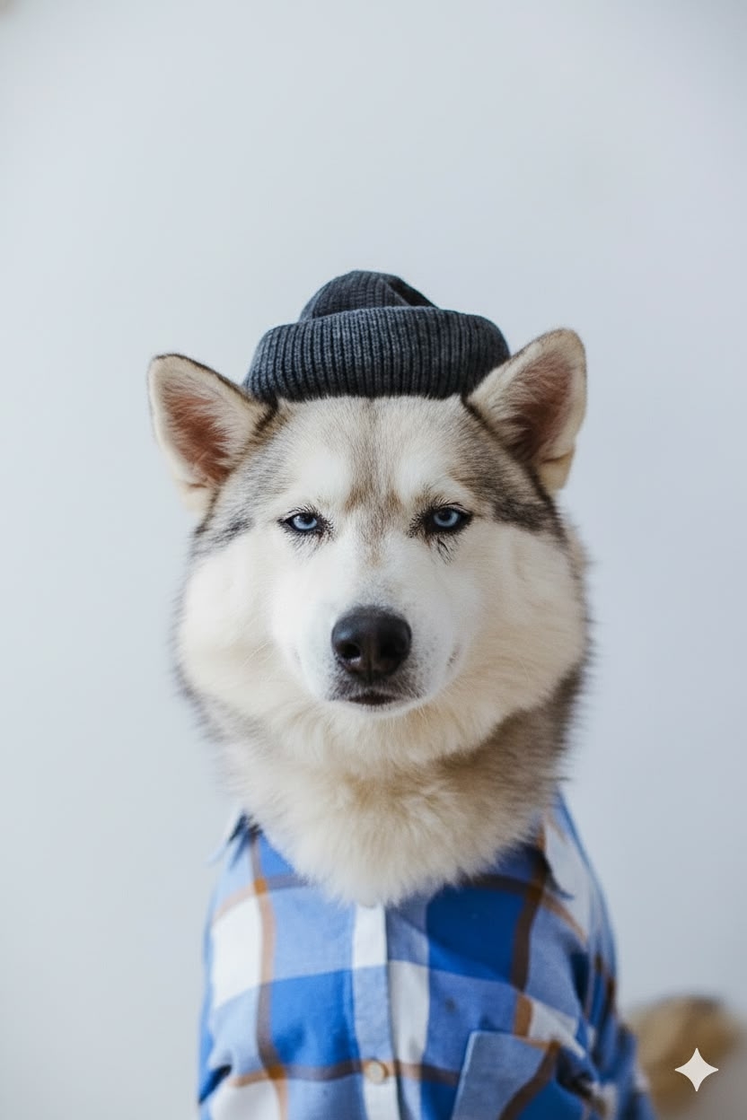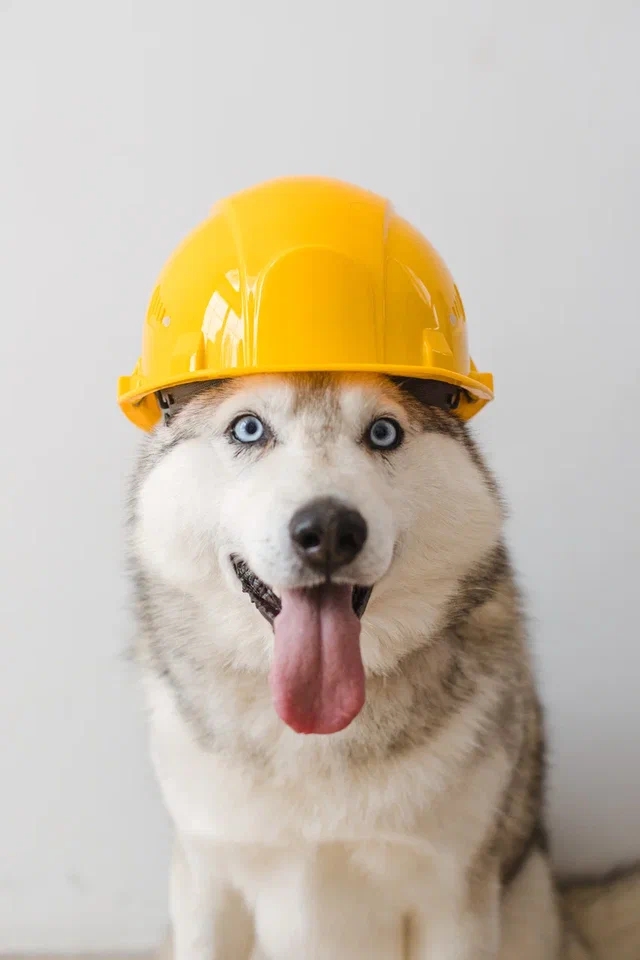 В пристрой выходит хаски – «недвижимость», абсолютно флегматичный, познавший этот мир – Енот💛