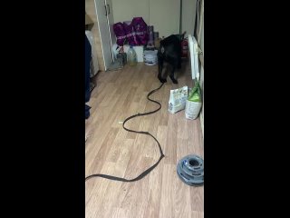 Кане Корсо пока проходит знакомство с потенциальной семьей.