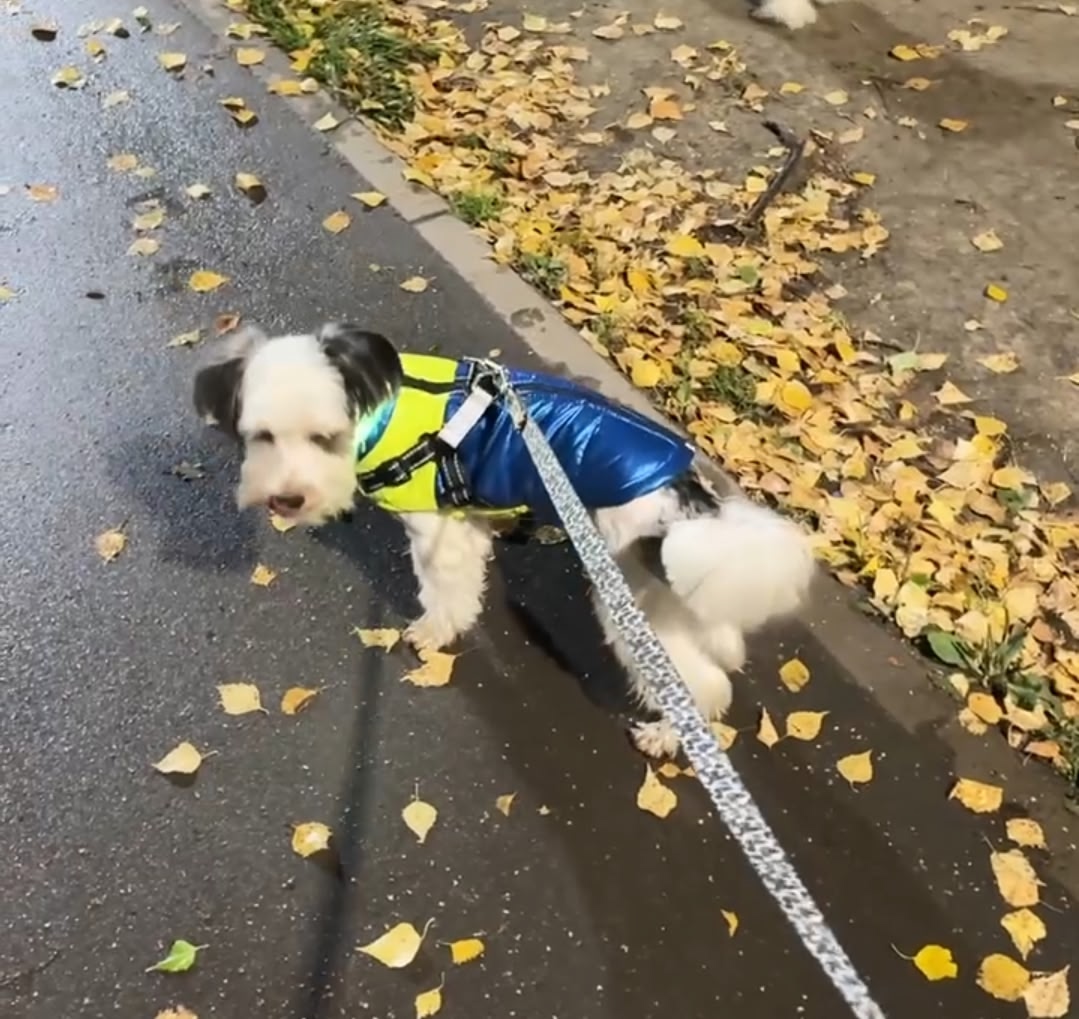 В районе Гомзовского кольца, вырвался из рук и побежал в сторону Димитрова к детскому садику – Димитровскому парку. Одет как на фото, светящийся ошейник и бегает скорее всего вместе с рулеткой-поводком.
