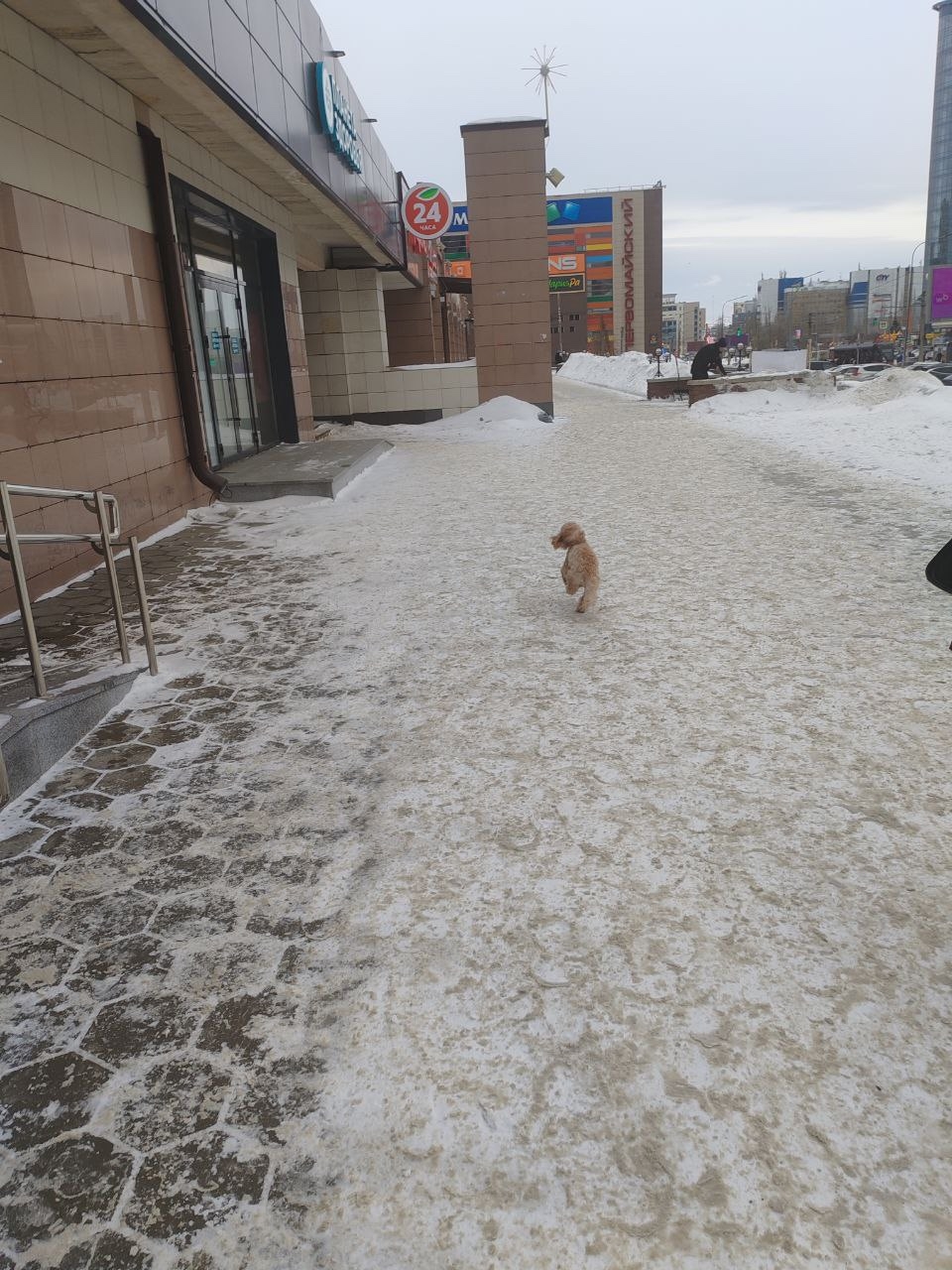 В районе красноармейского,6* замечен пудель (возможно Мальтипу), явно потеряшка, бегает из стороны в сторону, поймать придержать не получилось, фото тоже только такое удалось сделать