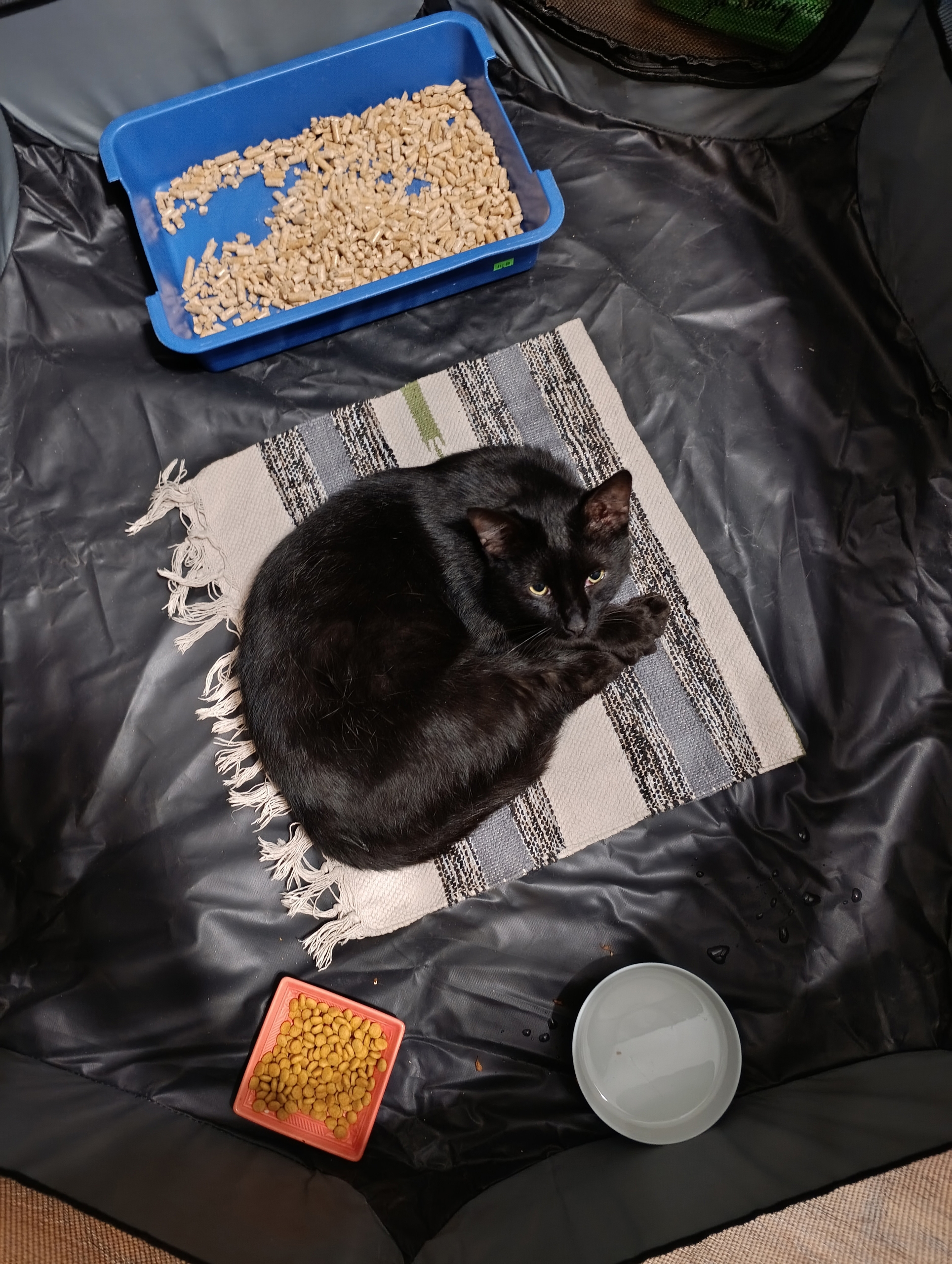 В районе ЖК «Старая крепость» был найден черный гладкошерстный кот. Явно домашний, ухоженный и ласковый, к лотку приучен. Но очень голодный — видимо, не первый день скитается. Сейчас у нас на передержке в манеже, т.к. дома своя кошка, которая не очень принимает. Ищем хозяина или новую семью. Вдруг это ваш, или слышали, что у кого-то пропал питомец.